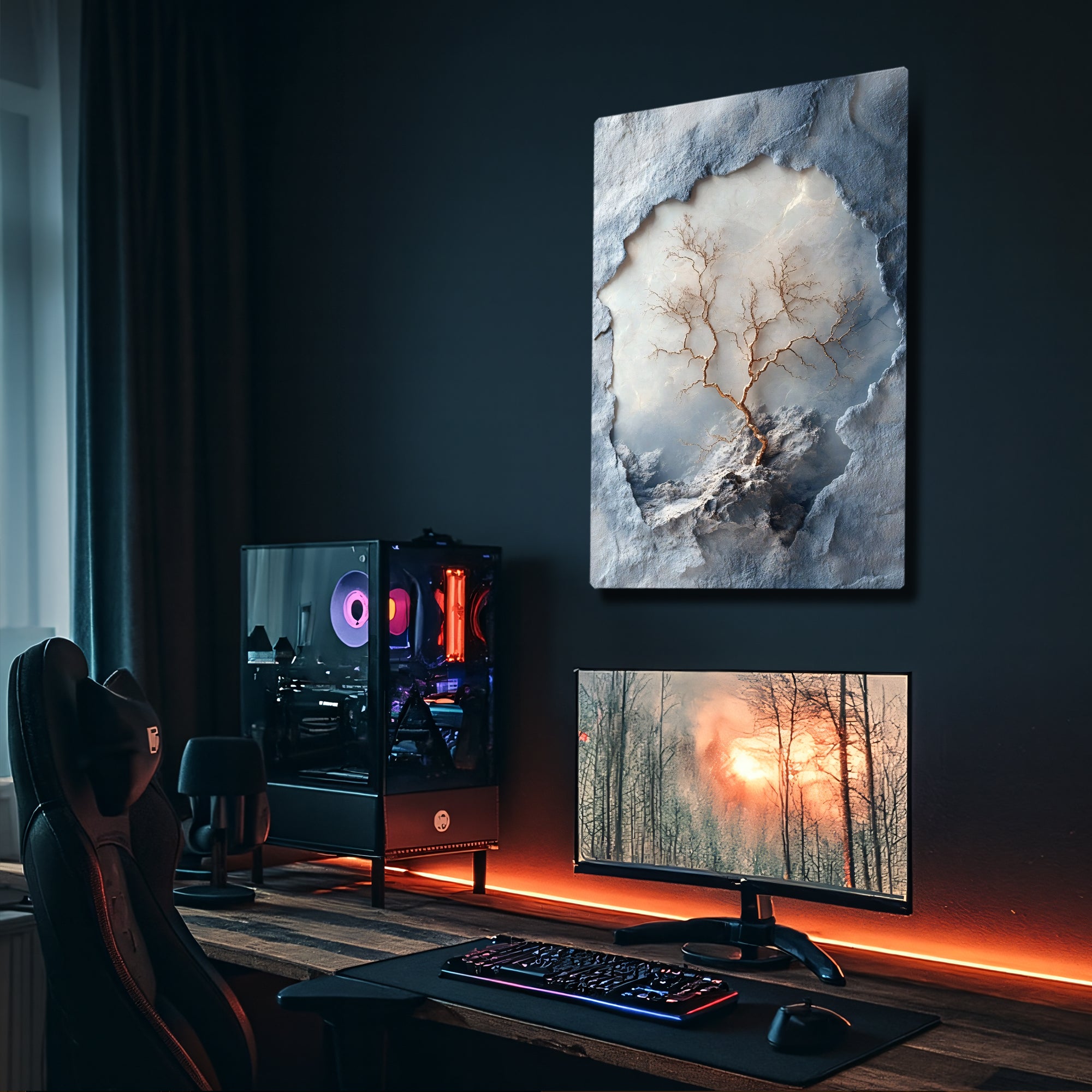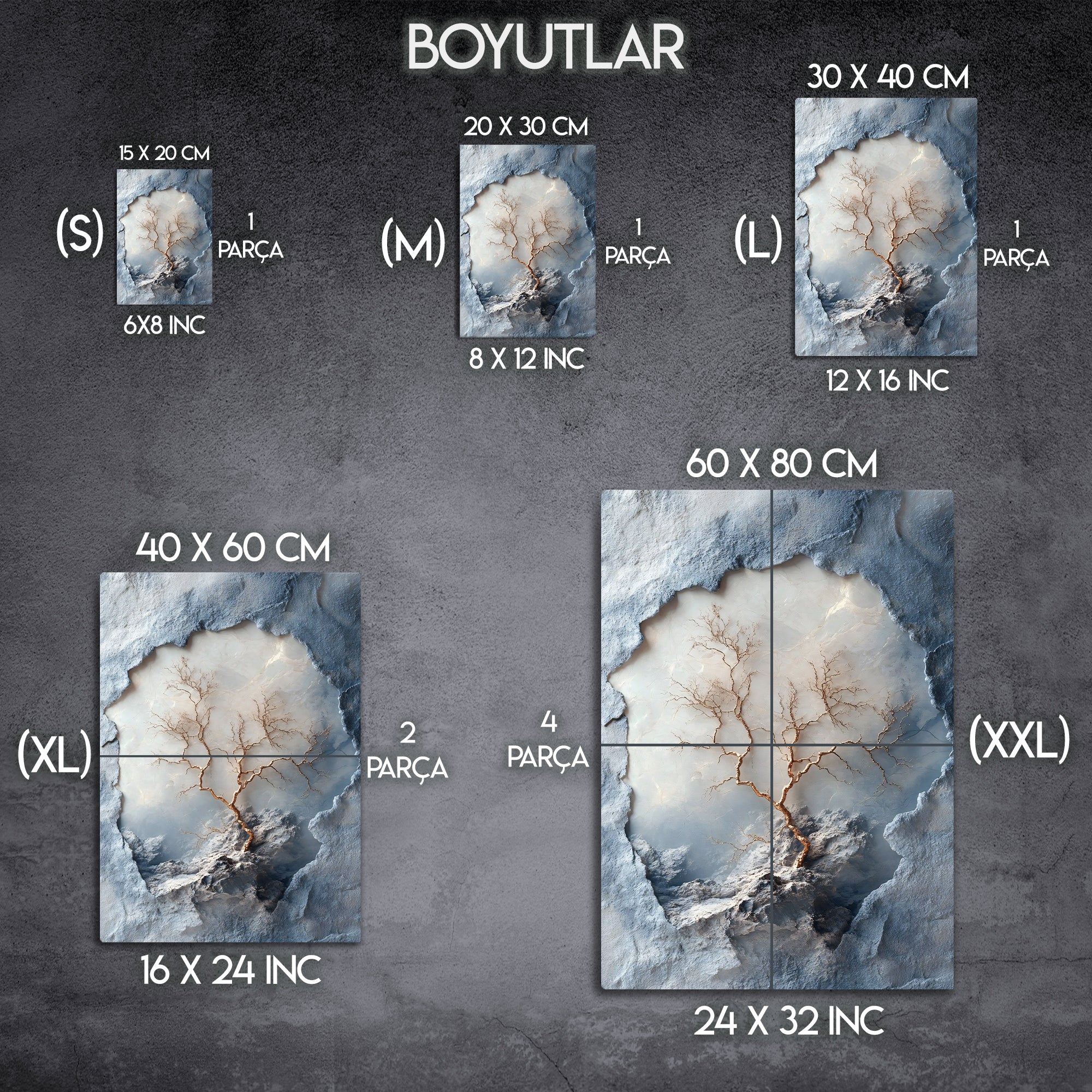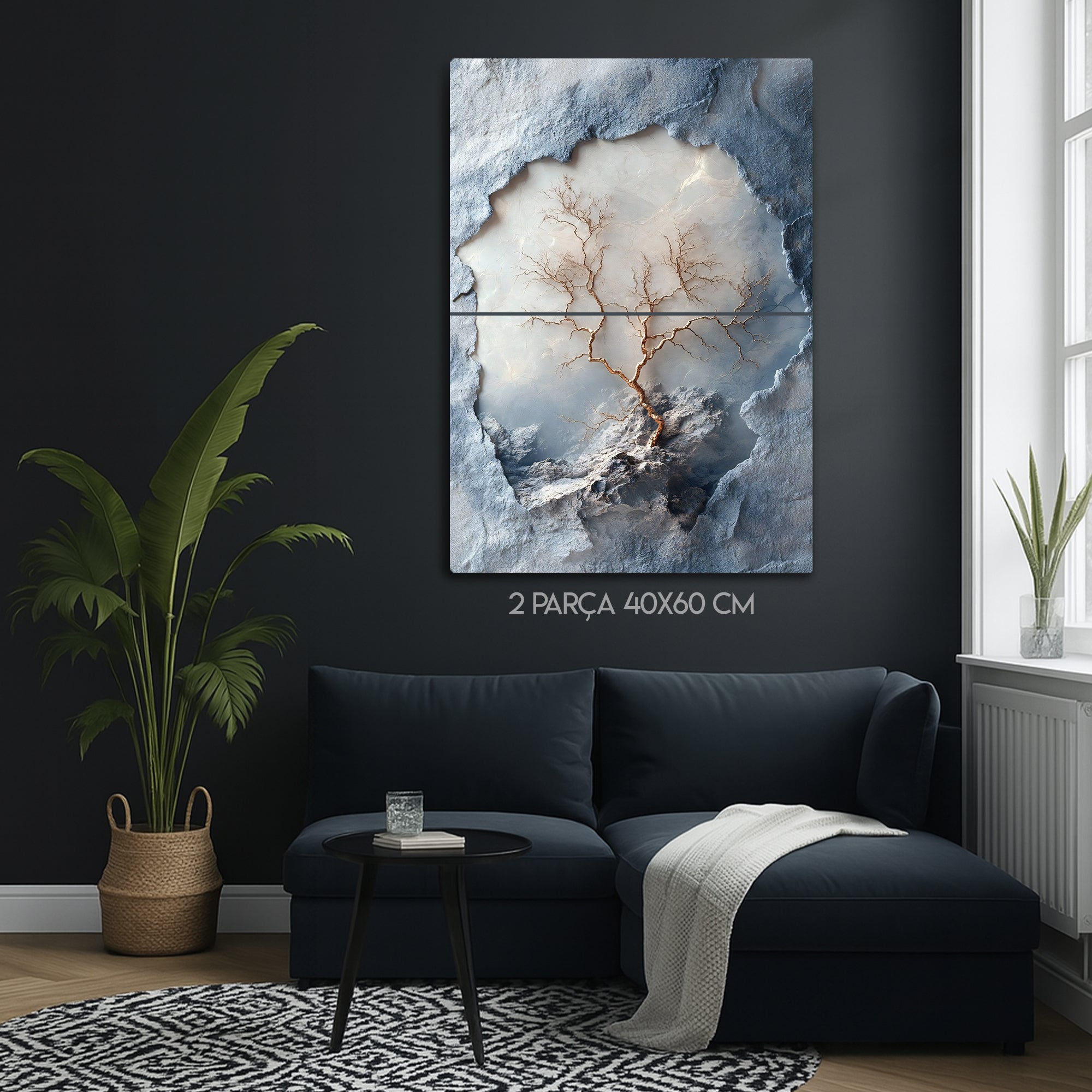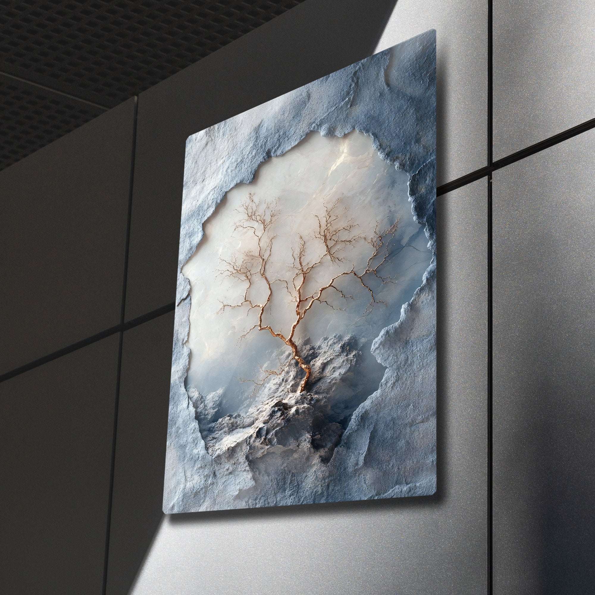 3D Görünüm Doğal Kaya ve Ağaç Desenli - Metal Tablo