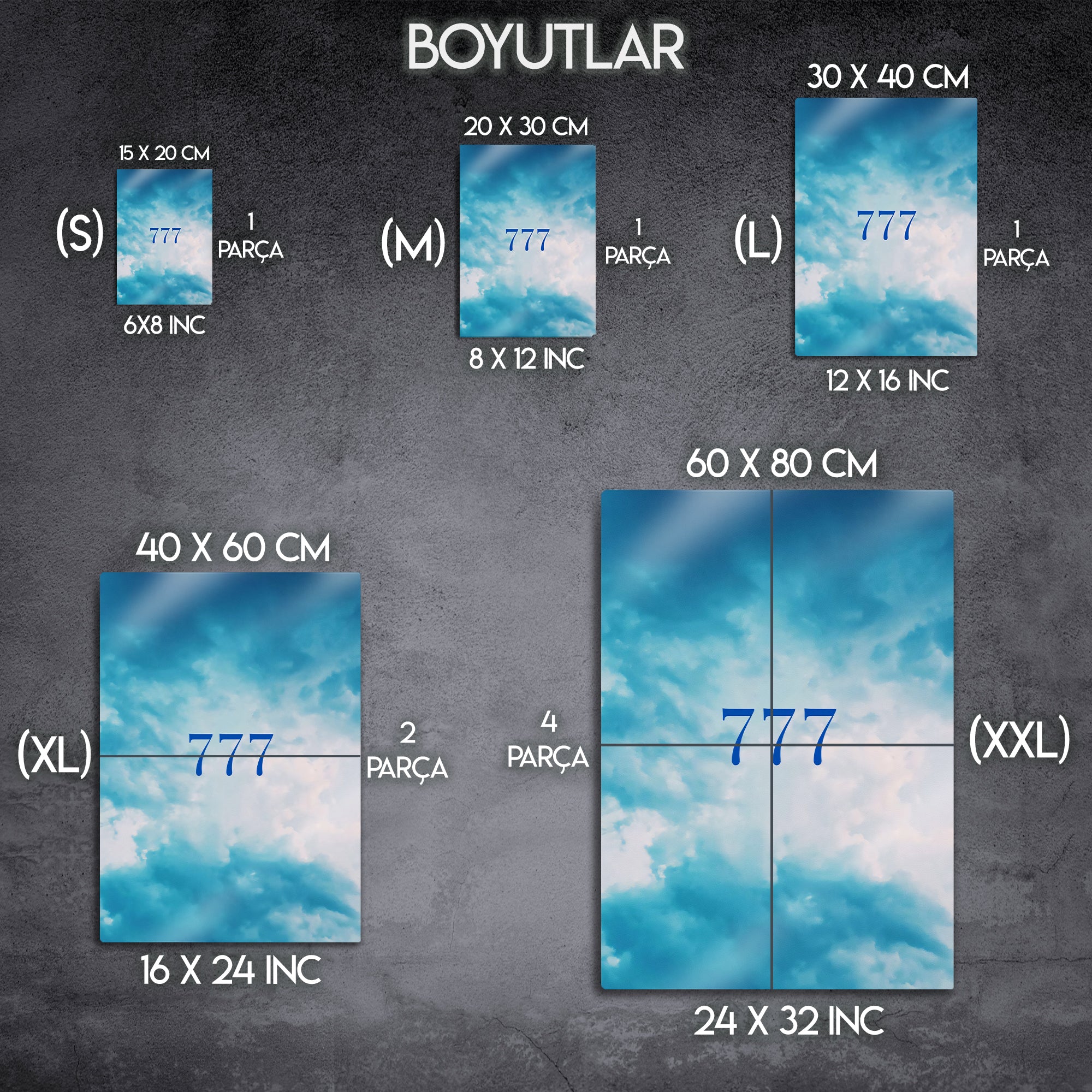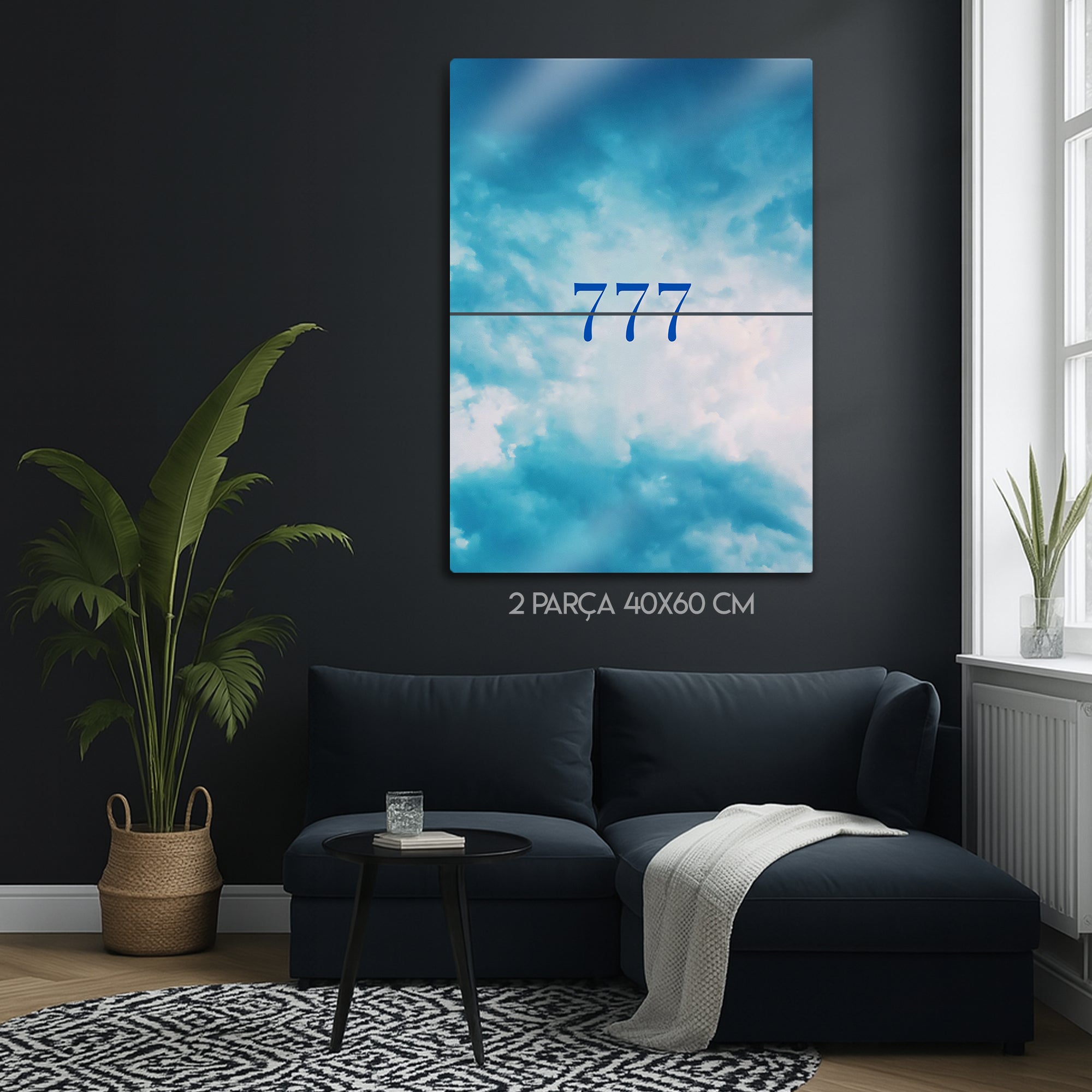 Şans ve pozitif enerjinin sembolü olan 777 sayısı, huzur verici gökyüzü fonuyla buluşarak metal tabloya işlendi. Minimalist tasarımıyla hem modern hem de spiritüel bir dokunuş sunan bu tablo, yaşam alanlarınıza dinginlik ve enerji katar.