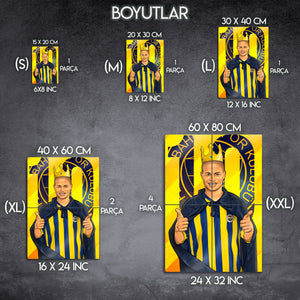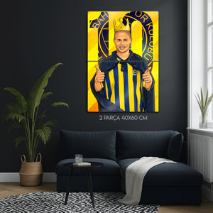 Fenerbahçe’nin efsane kaptanı ve 10 numarası Alex de Souza, sarı-lacivert forması ve kral tacı ile bu özel metal tabloda ölümsüzleşti. Taraftarların gönlünde “Kral” olarak anılan Alex’in bu ikonik tasarımı, hem nostaljik hem de modern dekoratif bir sanat eserine dönüştü.