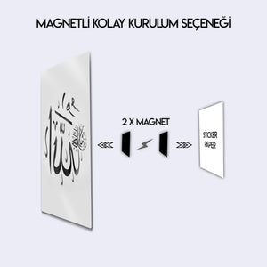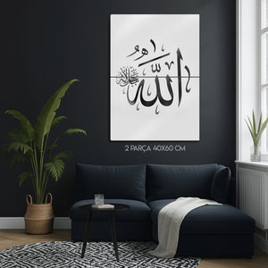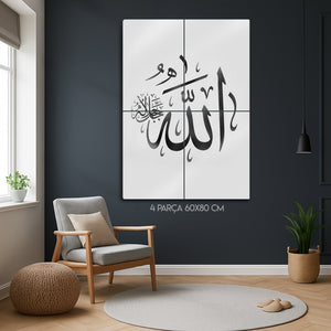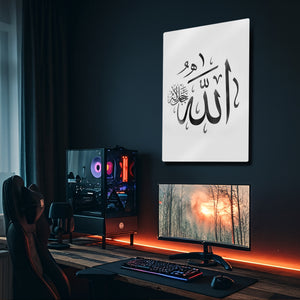 İslam sanatının en değerli ifadelerinden biri olan Allah lafzı, zarif hat sanatı ile bu metal tabloya işlenmiştir. Siyah-beyaz kontrastıyla modern dekorasyonlara uyum sağlayan bu eser, hem manevi anlamı hem de estetik görünümüyle yaşam alanlarınıza huzur katar.