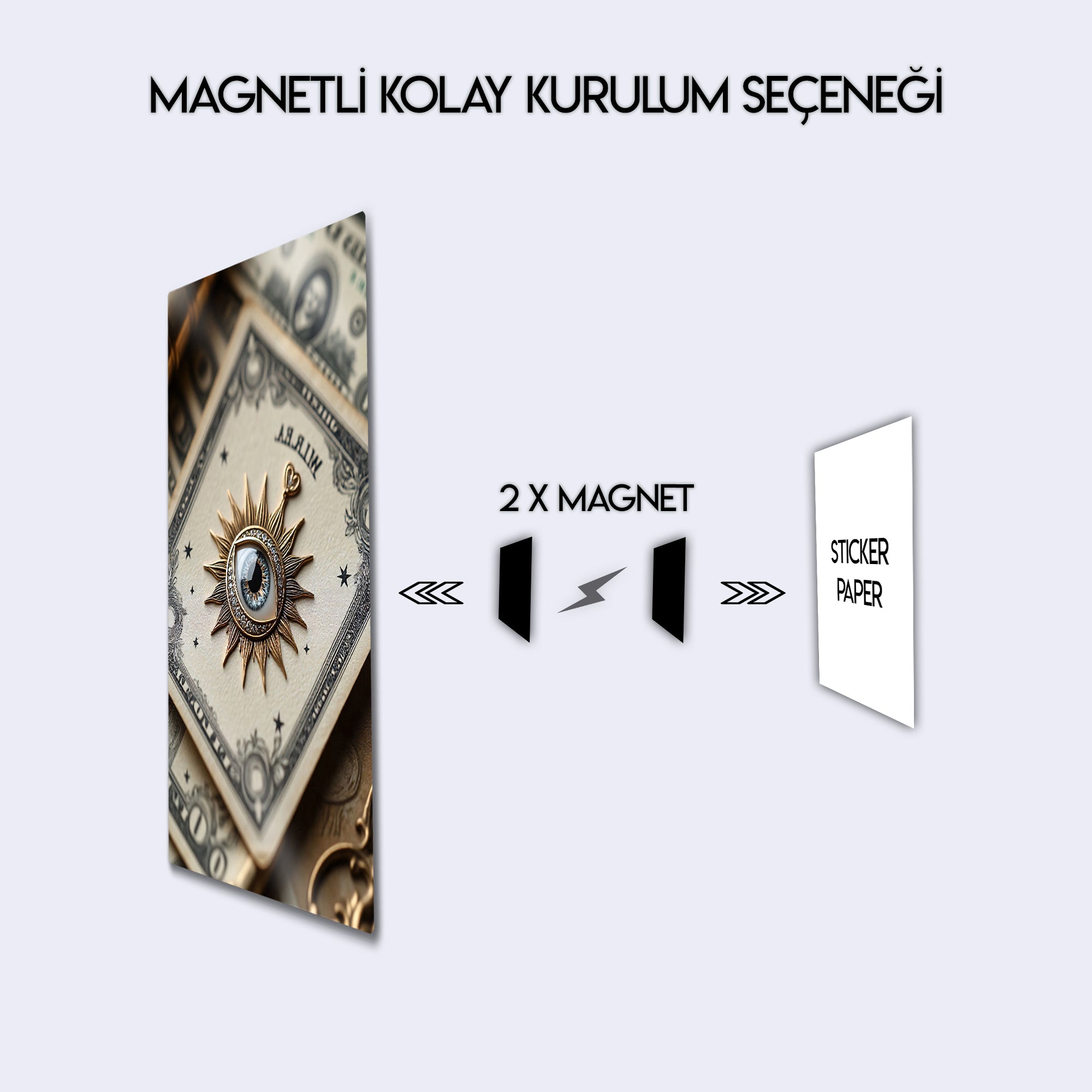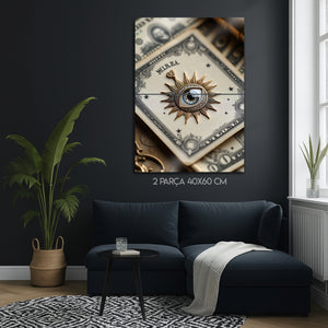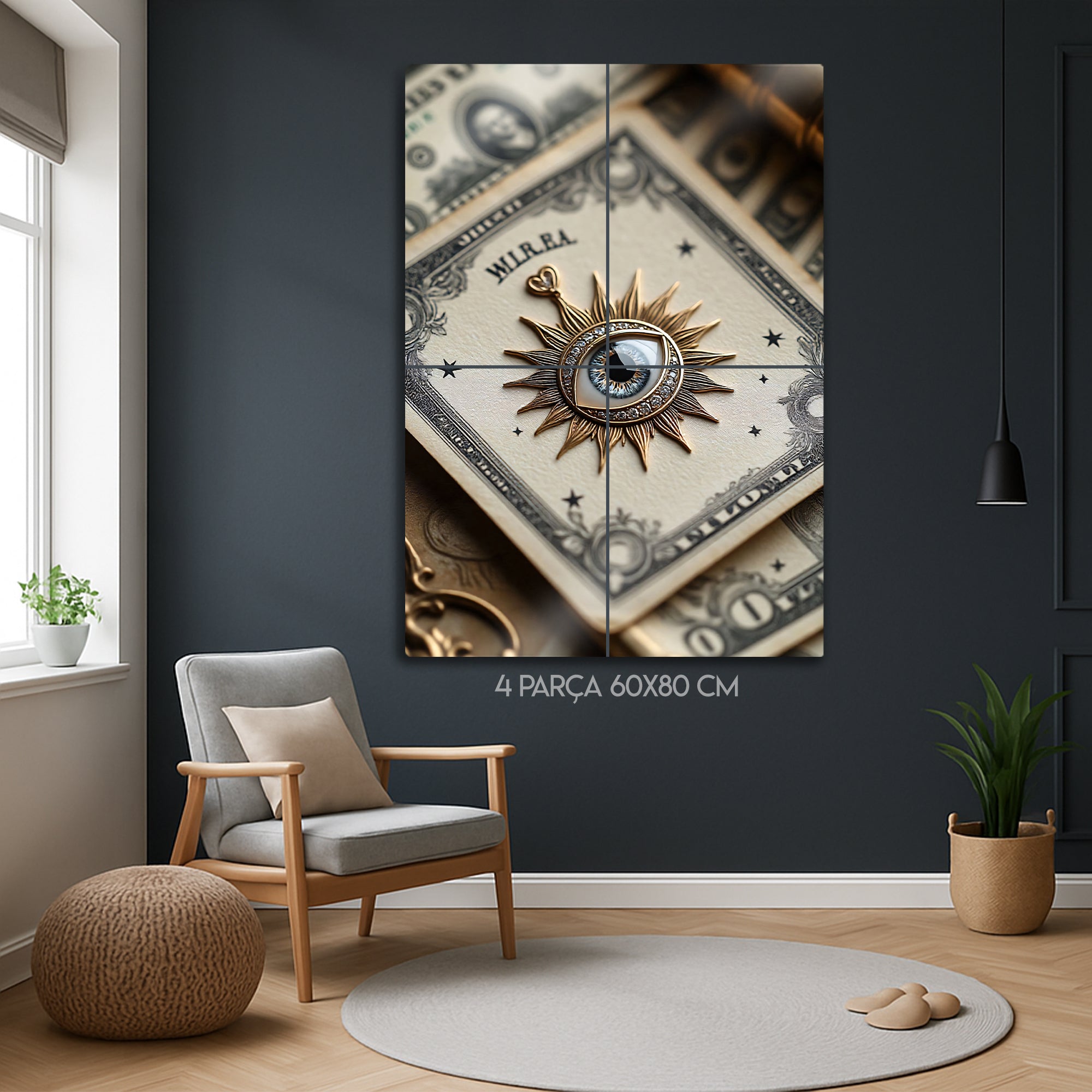 Altın Göz Sembolü ve Dolar Desenli - Metal Tablo