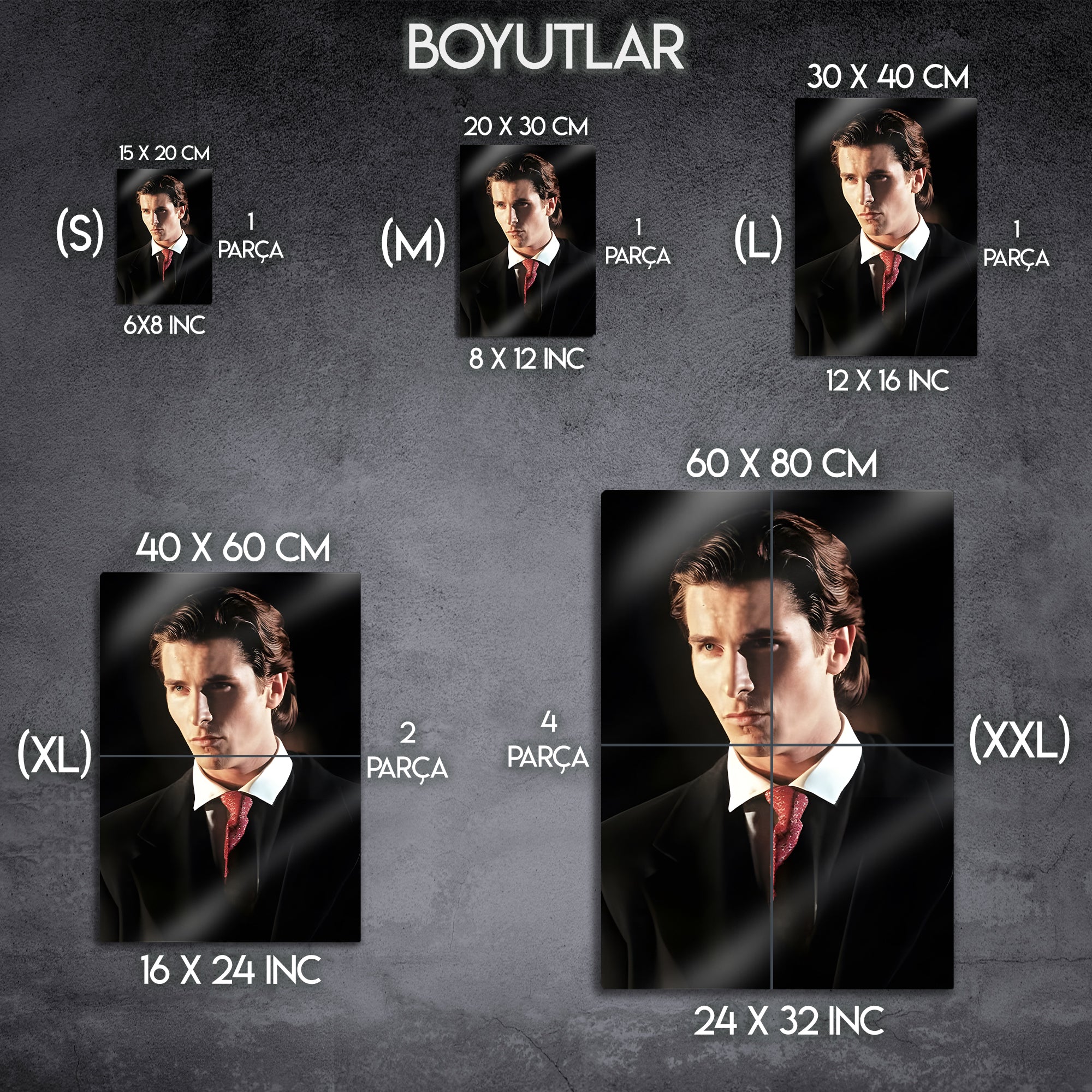 Kült filmlerden biri olan American Psycho’nun unutulmaz karakteri Patrick Bateman’dan esinlenerek hazırlanmış bu metal tablo, ikonik duruşu ve şık tasarımıyla yaşam alanlarınıza farklı bir hava katıyor. Sinema severler ve koleksiyoncular için özel bir dekoratif parçadır.