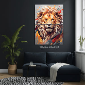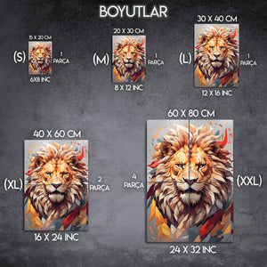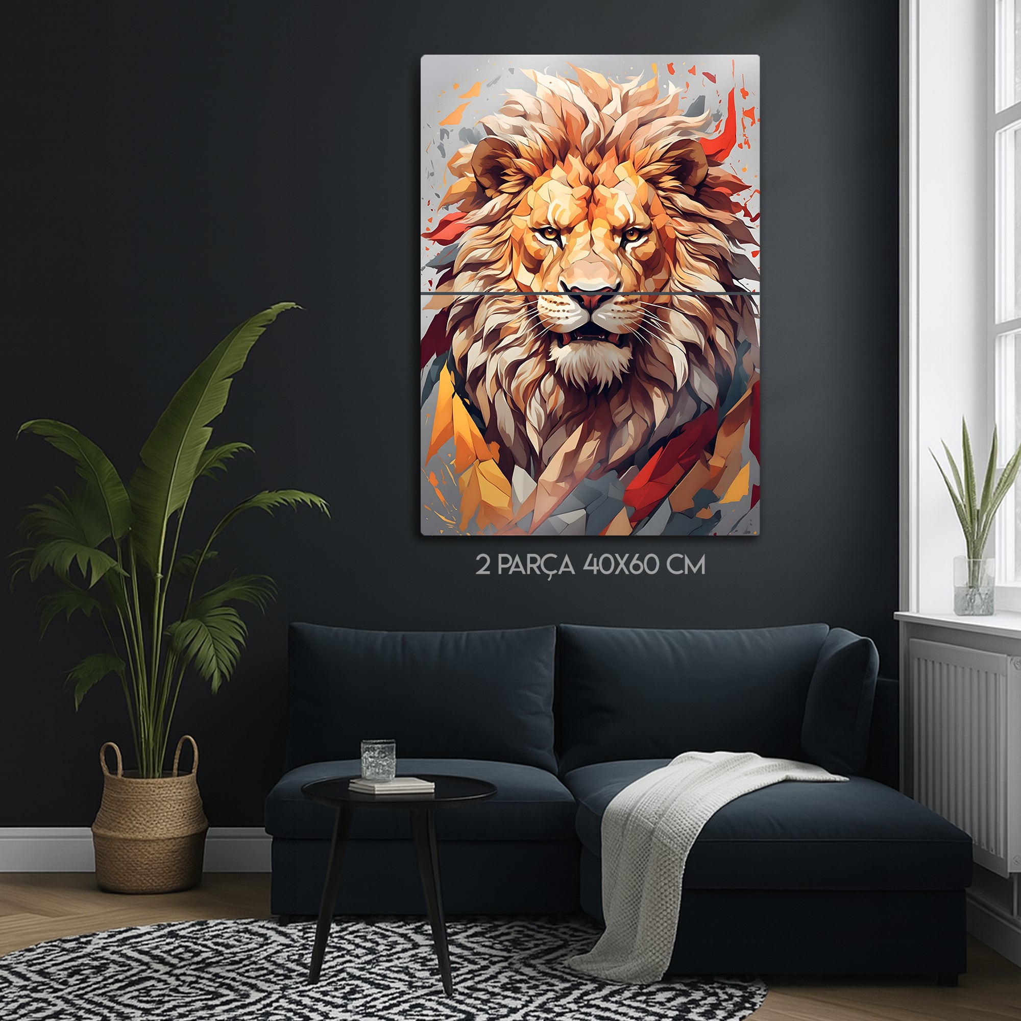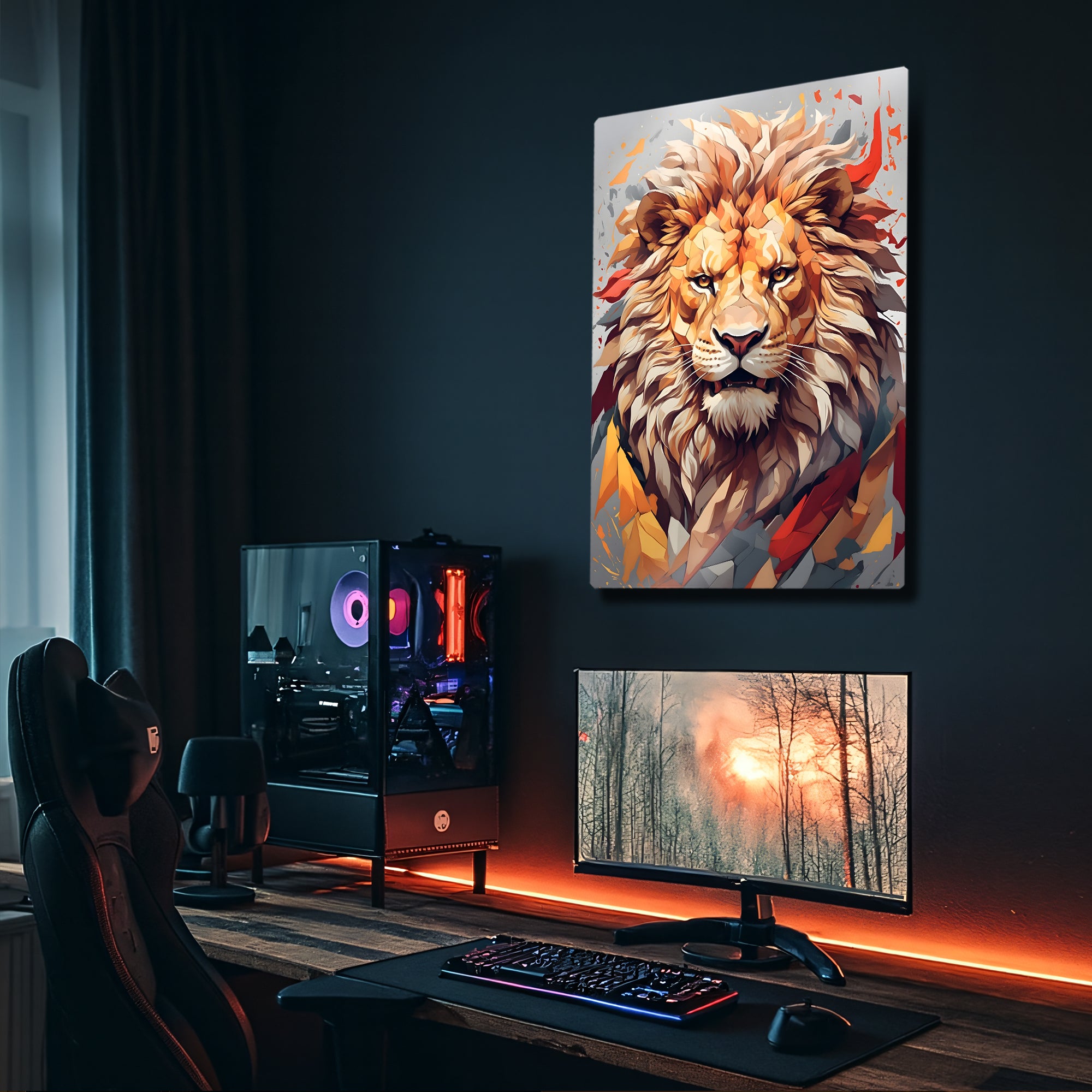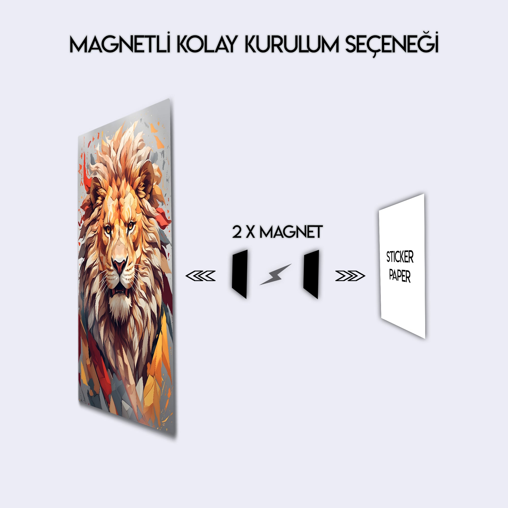 Bu eser, sadece bir hayvan portresi değil, aynı zamanda liderliğin, gücün ve modern estetiğin bir kutlamasıdır. Her bir renk bloğu ve keskin hat, aslanın o asil ve sarsılmaz duruşunu daha da güçlendirir. Metalin modern dokusu, bu sanatsal tasarımın her bir çizgisini, rengini ve enerjisini mükemmel bir şekilde öne çıkarır.