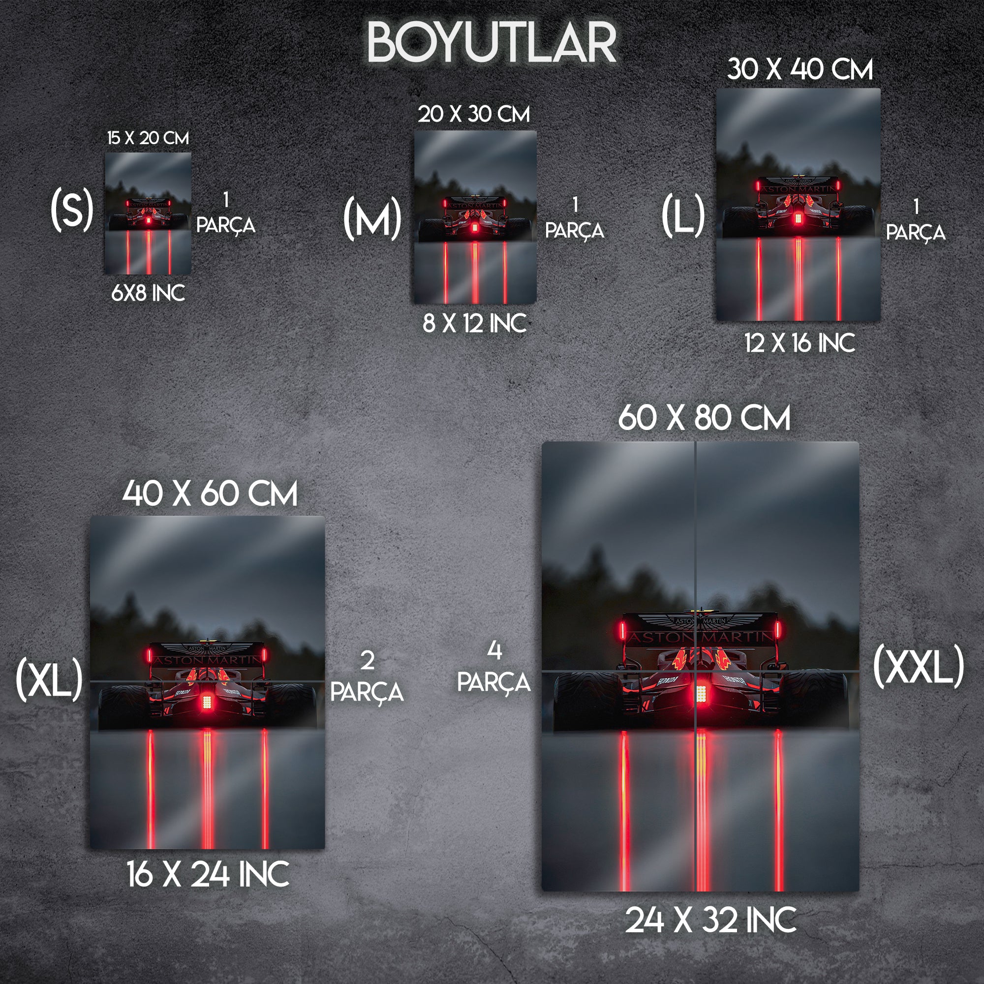 Hızın, gücün ve adrenalinin simgesi olan Formula 1 yarış aracı, F1 Aston Martin tasarımıyla bu özel metal tabloda hayat buluyor. Kırmızı ışık detayları ve dinamik perspektifiyle duvarlarınıza modern ve sportif bir enerji katıyor.