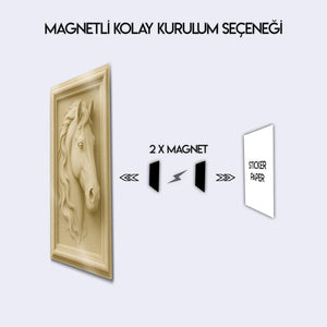 Dayanıklı metal yüzeyi ve özenle işlenmiş at figürü, dekorasyonunuza hem modern hem de klasik bir şıklık katar. Salon, ofis, çalışma odası veya giriş alanlarında sergilendiğinde bulunduğu ortama özgün bir karakter kazandırır. Atın temsil ettiği zarafet ve özgürlük, duvarlarınıza sadece görsel değil, anlamlı bir değer de katacaktır.