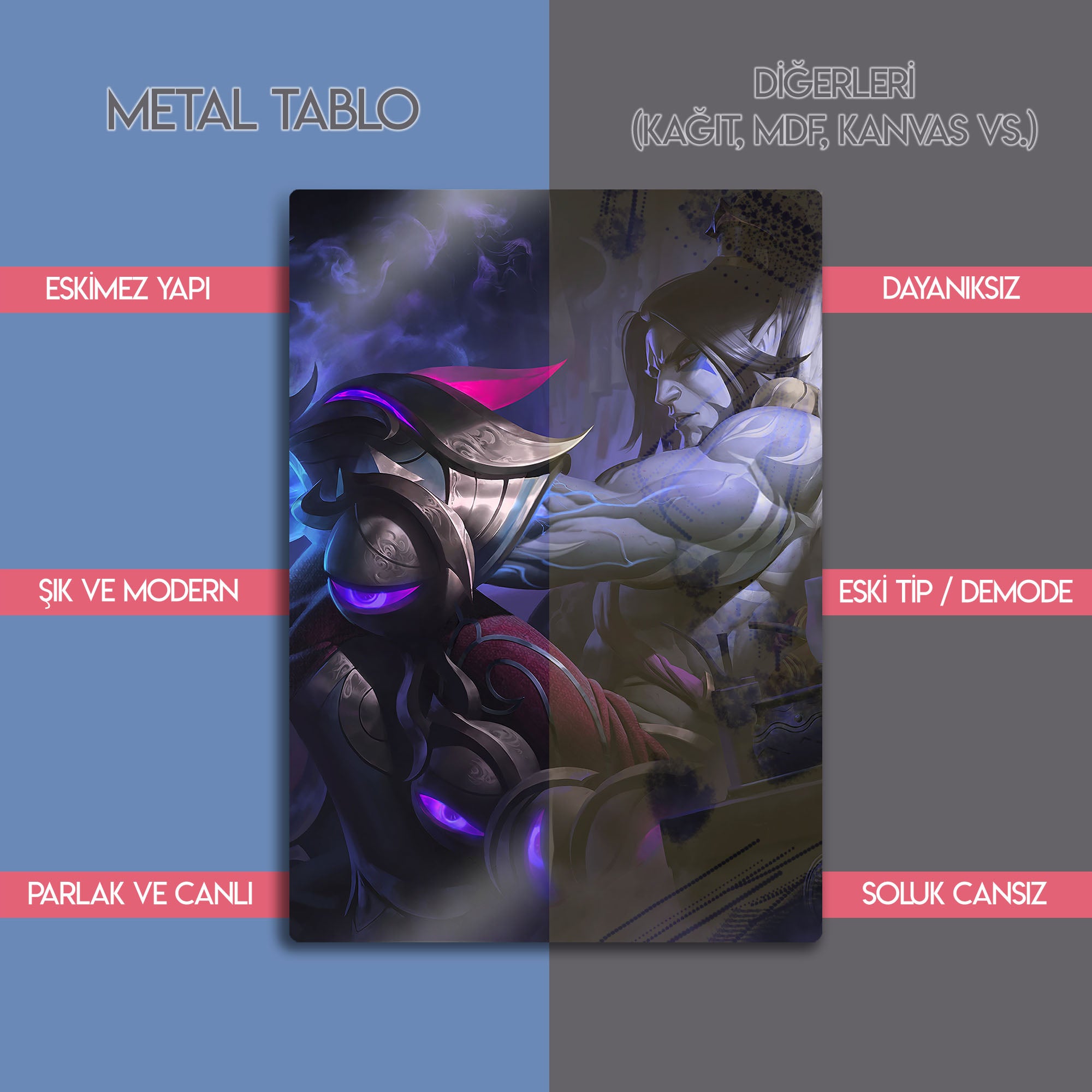 League of Legends Ay İfriti Sylas tablosu şimdi sizlerle. Evinize, ofisinize, duvarınıza renk katacak eşsiz koleksiyonda bir tablo.