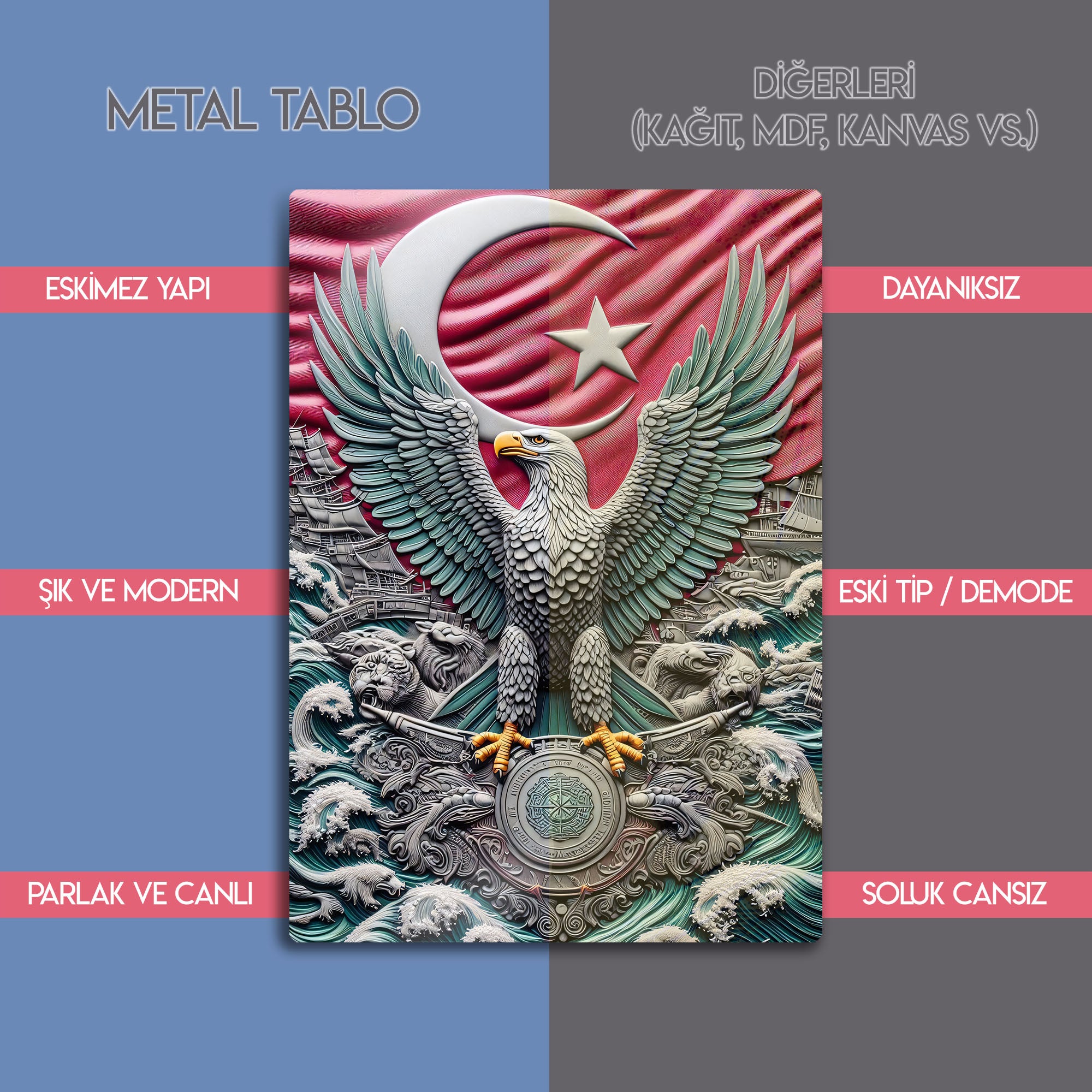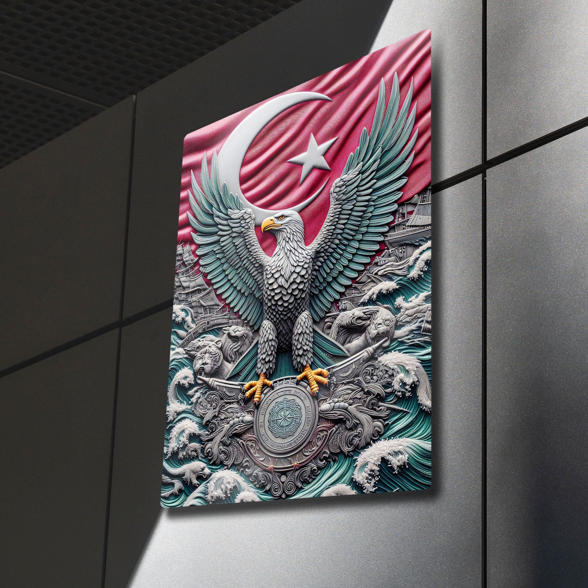 Ay Yıldızlı Bayrak ve Epik Kartal 3D - Metal Tablo