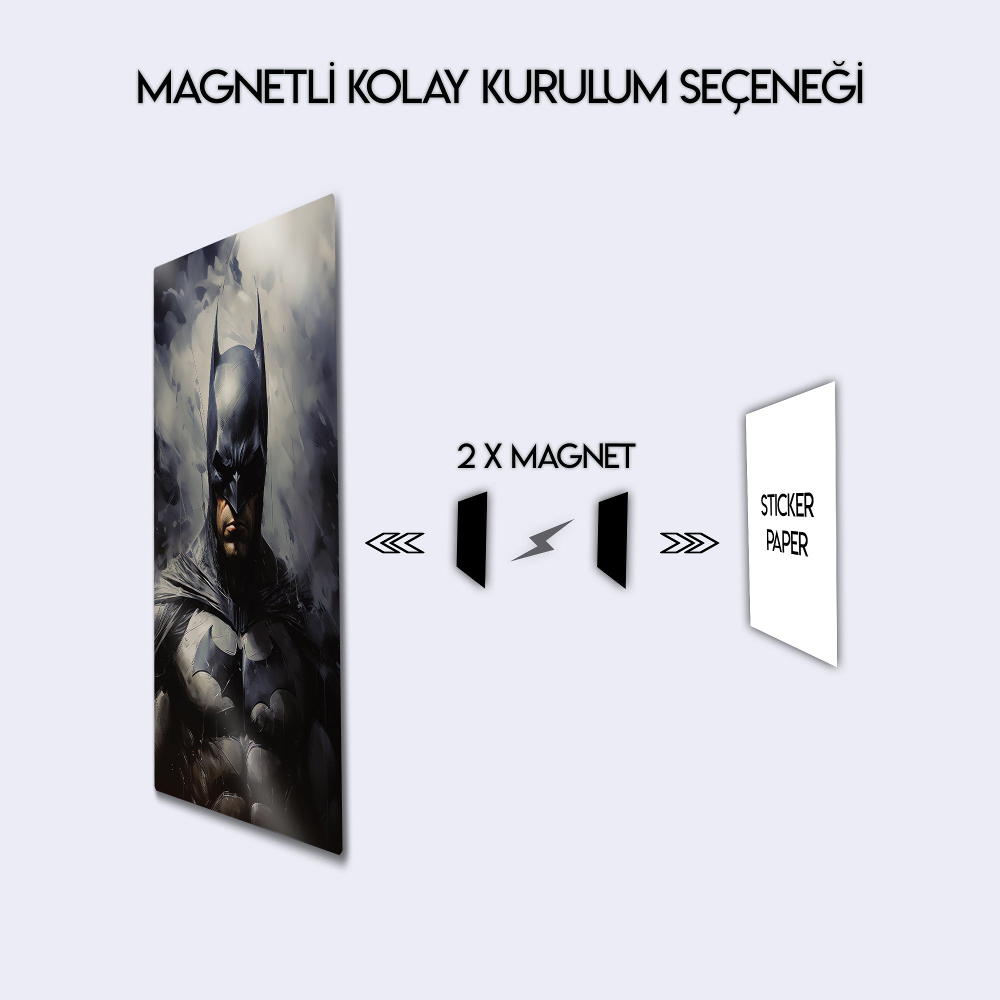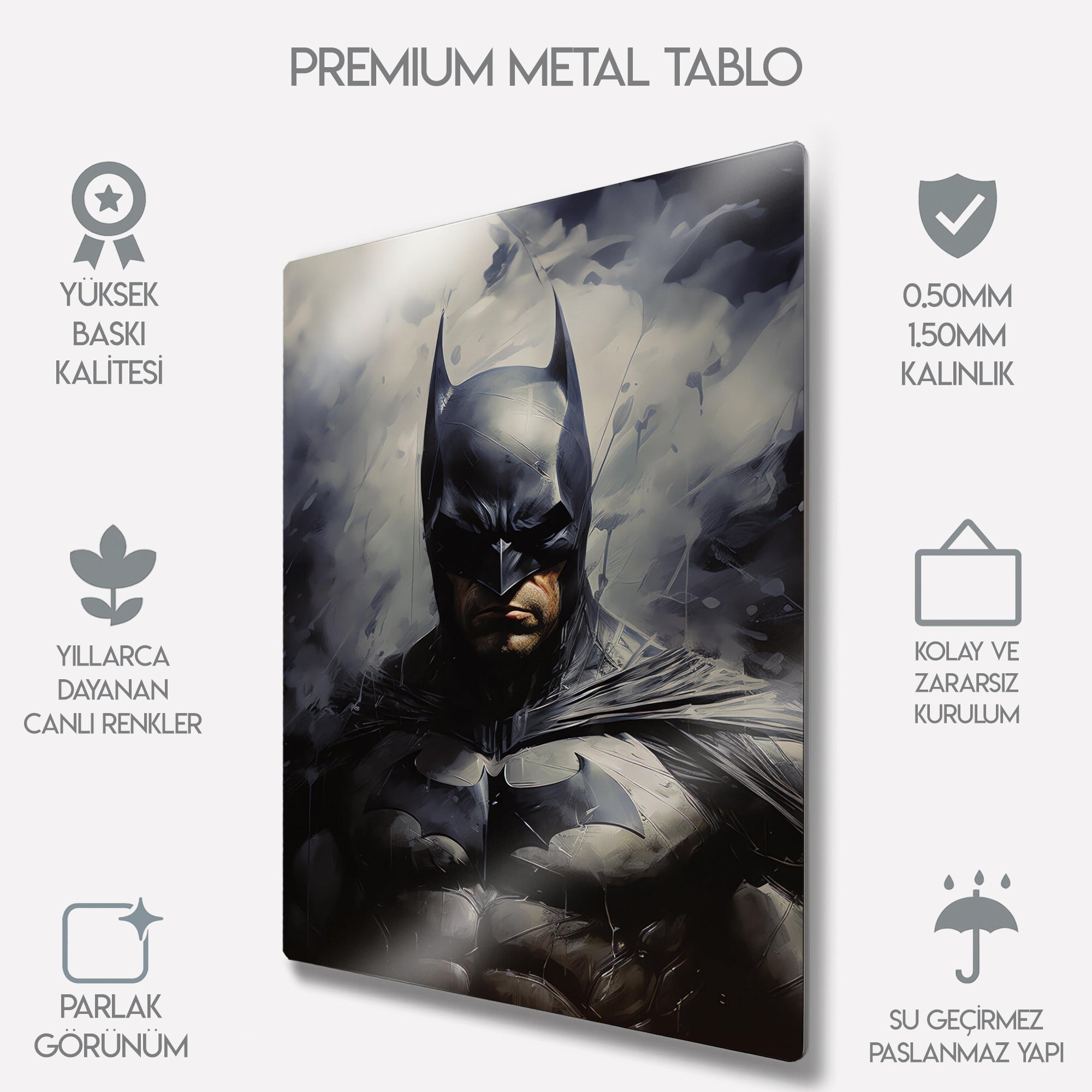 Kara Şövalye (The Dark Knight) Gölgelerin kahramanı Batman, bu özel siyah beyaz metal tablo ile karizmatik ve güçlü duruşunu evinize taşıyor. Dumanlar arasındaki etkileyici tasarım, odanıza modern ve gizemli bir atmosfer katıyor.