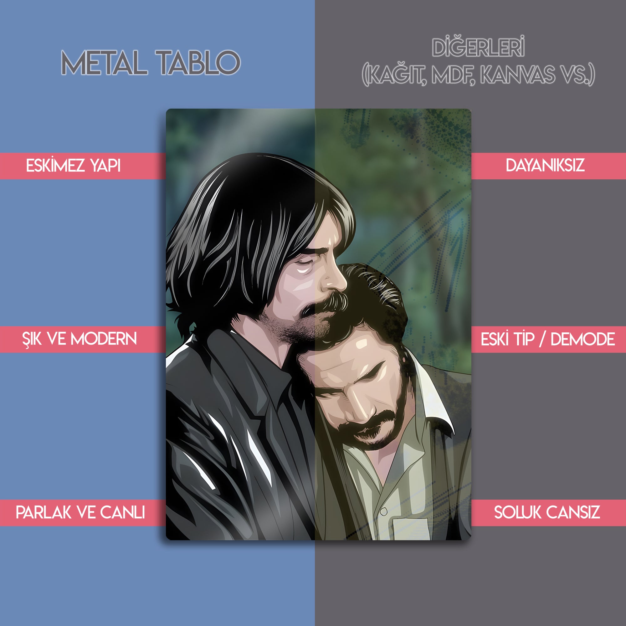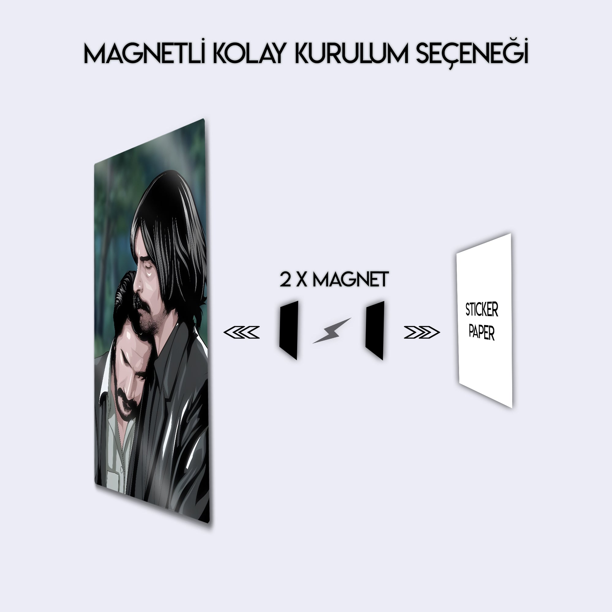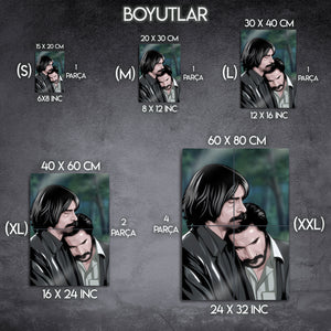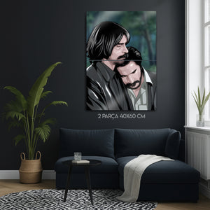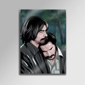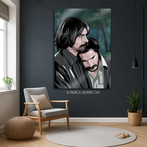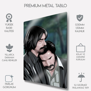 Türk televizyon tarihinin kült dizisi Behzat Ç. Bir Ankara Polisiyesi’nden unutulmaz bir sahne, Behzat ve Hayalet’in dostluğunu anlatan bu özel metal tablo ile yaşam alanlarınıza taşınıyor. Güçlü bağları, dostluğu ve dramı simgeleyen bu illüstratif tasarım, hayranları için eşsiz bir koleksiyon ürünü.