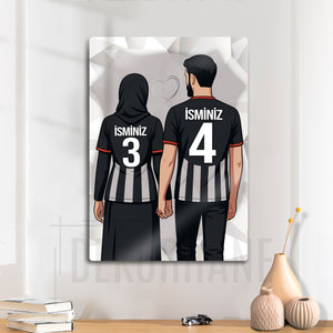 Beşiktaş Sevgili Erkek Kadın Türbanlı - Kişiselleştirilebilir Metal Tablo