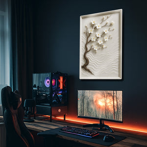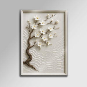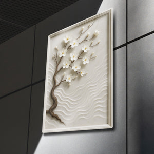 Doğanın zarafetini modern dekorasyonla buluşturan bu Beyaz Çiçekli Ağaç Desenli 3D Metal Tablo, minimalist tasarımı ve kabartma görünümüyle duvarlarınıza şıklık katar. Dal üzerinde açan beyaz çiçekler, huzur ve sadeliği yansıtırken, dalgalı arka plan tasarımı esere üç boyutlu bir derinlik kazandırır.