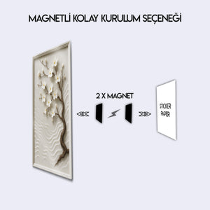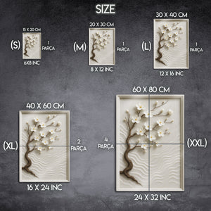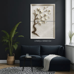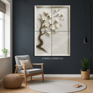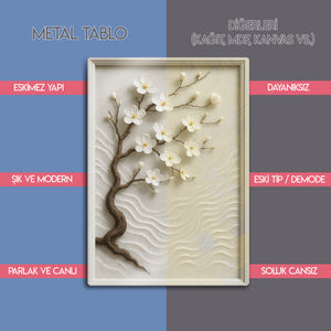 Beyaz Sakura Kiraz Çiçeği Ağaç Desenli 3D - Metal Tablo