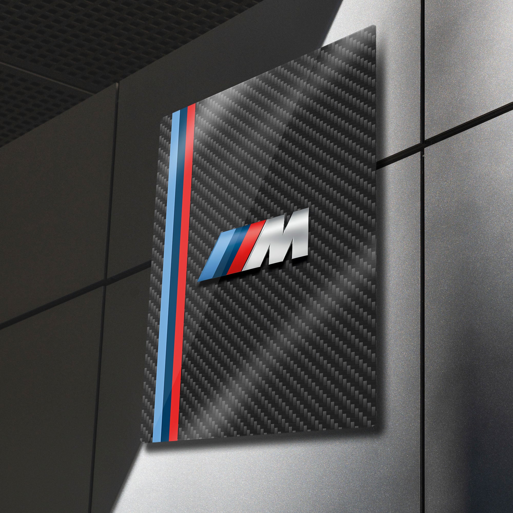 Otomotiv mühendisliğinin ve performansın zirvesi olan BMW M Power ruhunu duvarlarınıza taşıyın! Bu özel tasarım metal tablo, M serisinin ikonik logosunu ve efsanevi üç renkli şeridini, yüksek teknolojiyi ve hızı simgeleyen karbon fiber dokulu bir zemin üzerinde sunuyor.