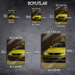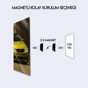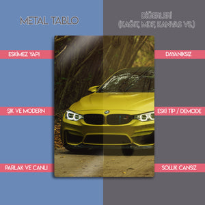 Otomobil tutkunları için hazırlanan bu metal tablo, göz alıcı sarı BMW M4’ün orman yolundaki güçlü ve estetik duruşunu öne çıkarıyor. Hem modern bir dekorasyon ürünü hem de araba severler için koleksiyonluk bir parça.