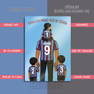 Babadan Miras Bu Sevda: Kişiye Özel Trabzonspor Baba ve 3 Oğul Metal Tablosu