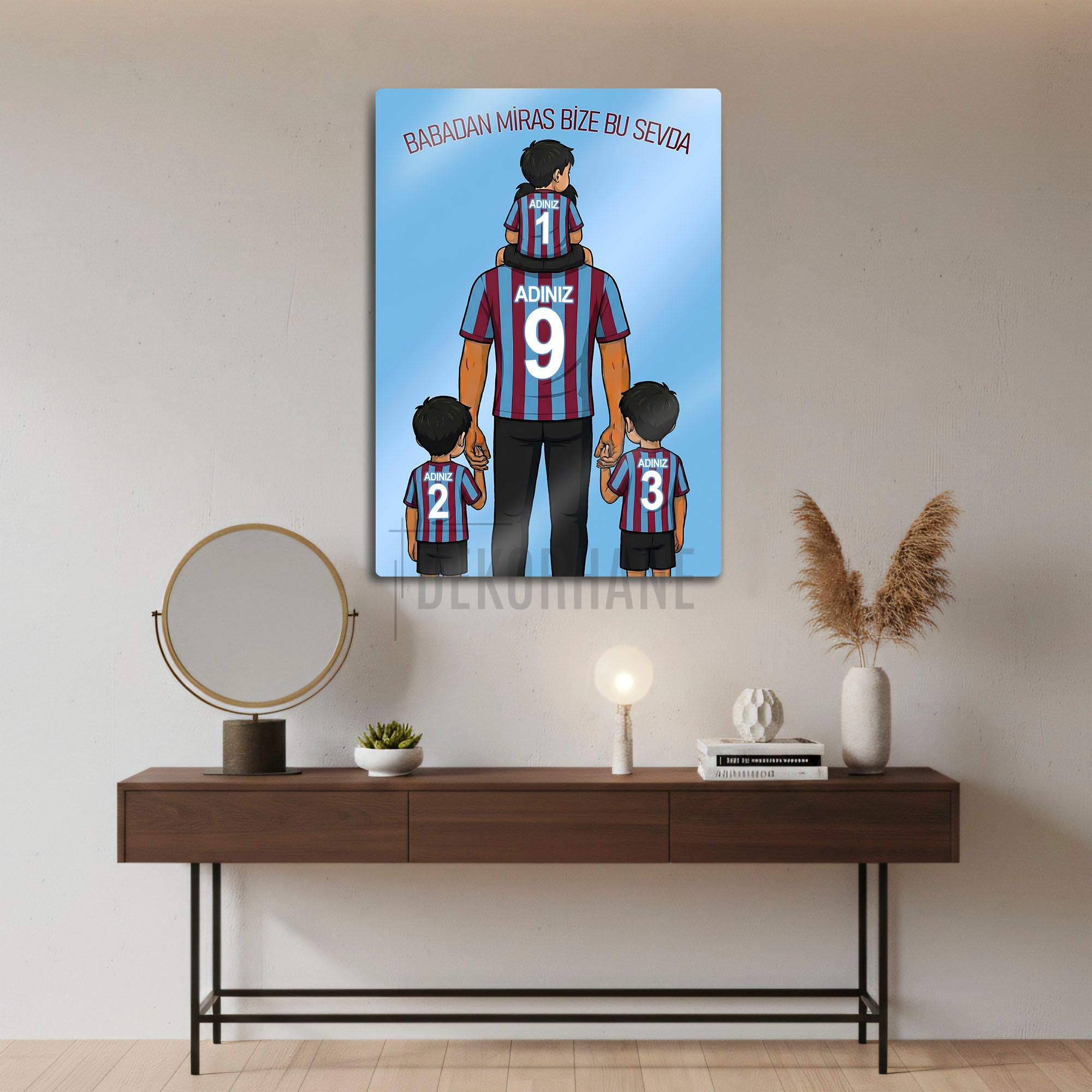 Hemen sipariş verin, Bordo-Mavi renklere olan aşkınızı ve ailenizin o sarsılmaz bağını Dekorhane.com kalitesiyle duvarlarınızda ölümsüzleştirin!