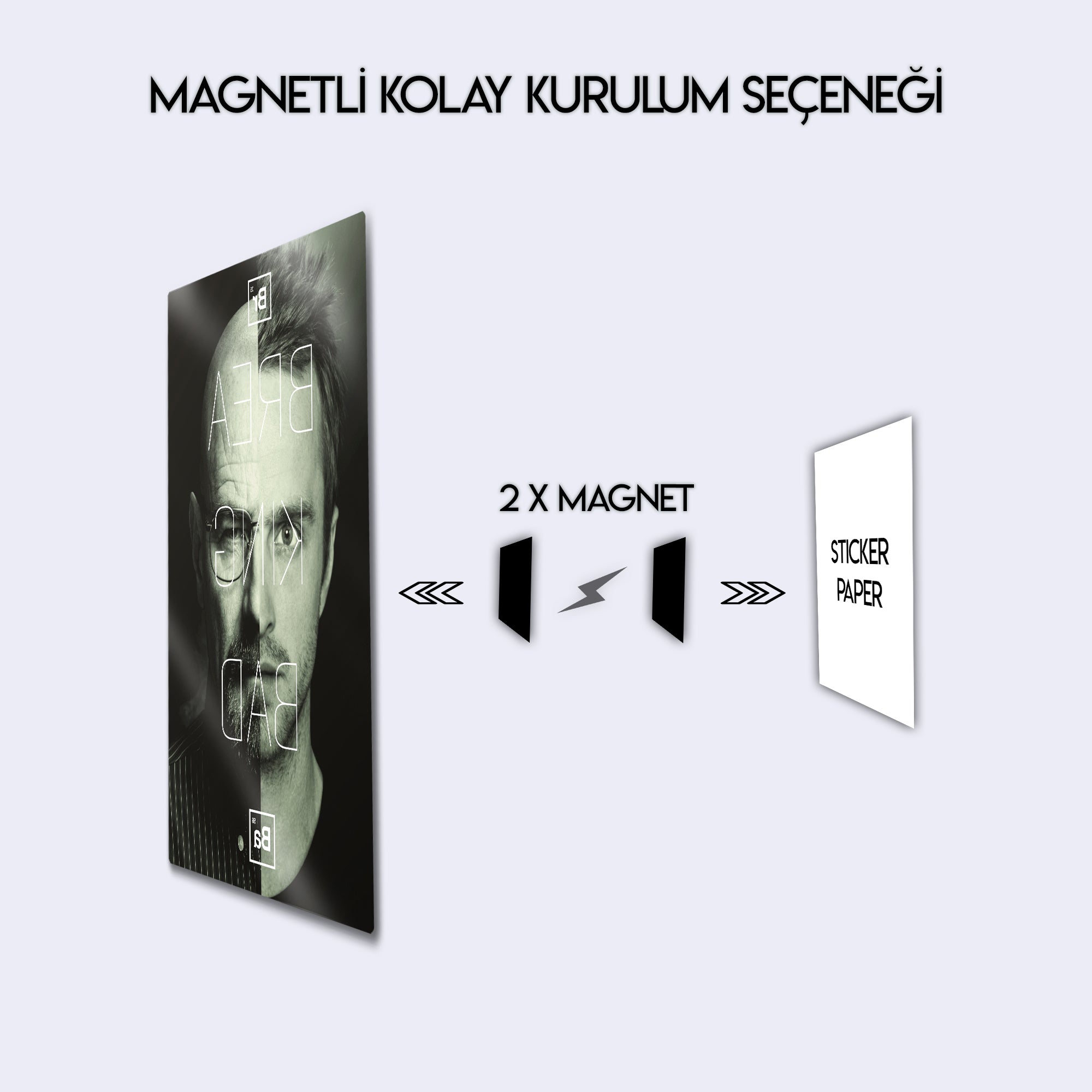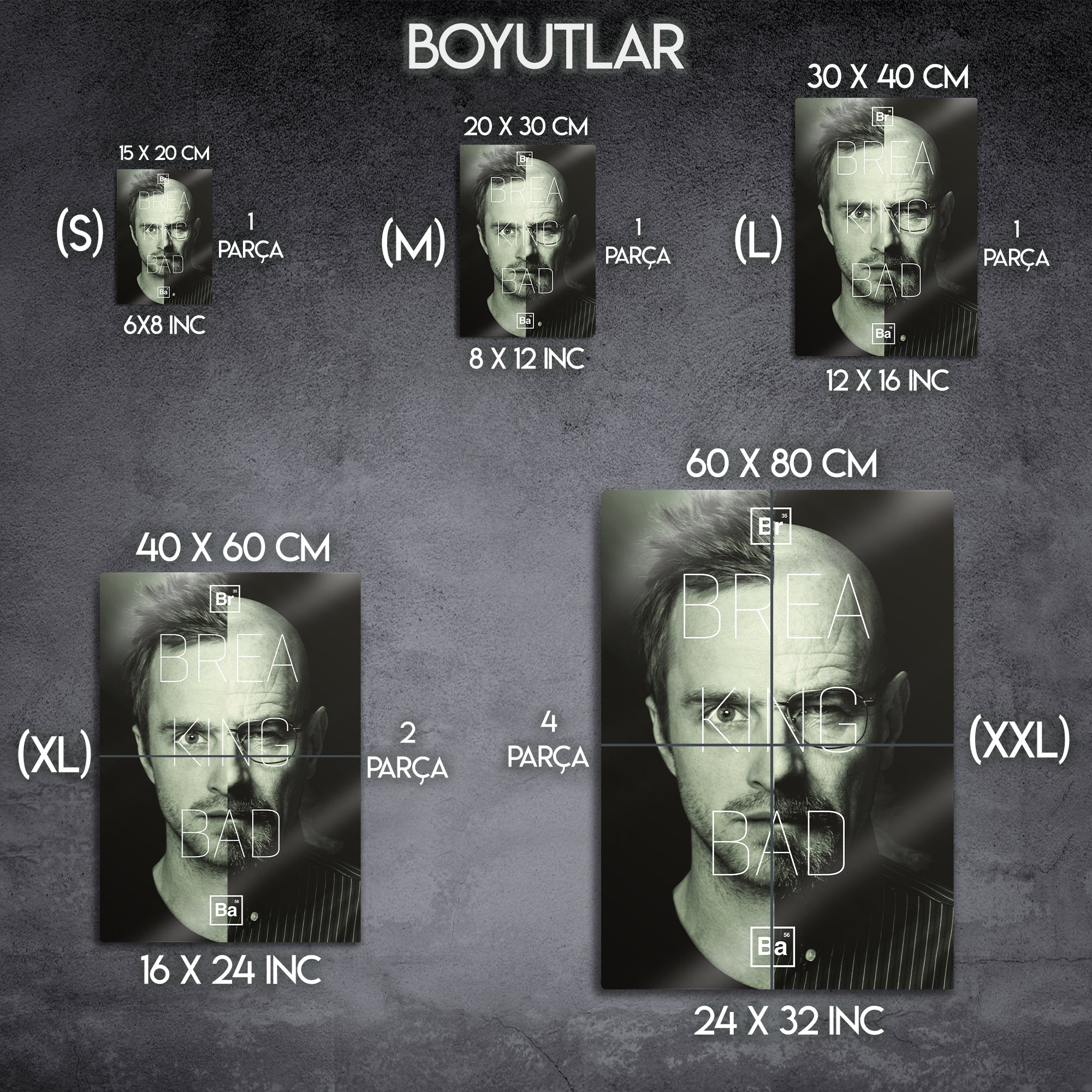Tüm zamanların en çok konuşulan dizilerinden Breaking Bad, bu özel metal tabloda hayat buluyor. Walter White ve Jesse Pinkman karakterlerini bir araya getiren bu minimal tasarım, dizinin karanlık ve sürükleyici atmosferini yansıtıyor.