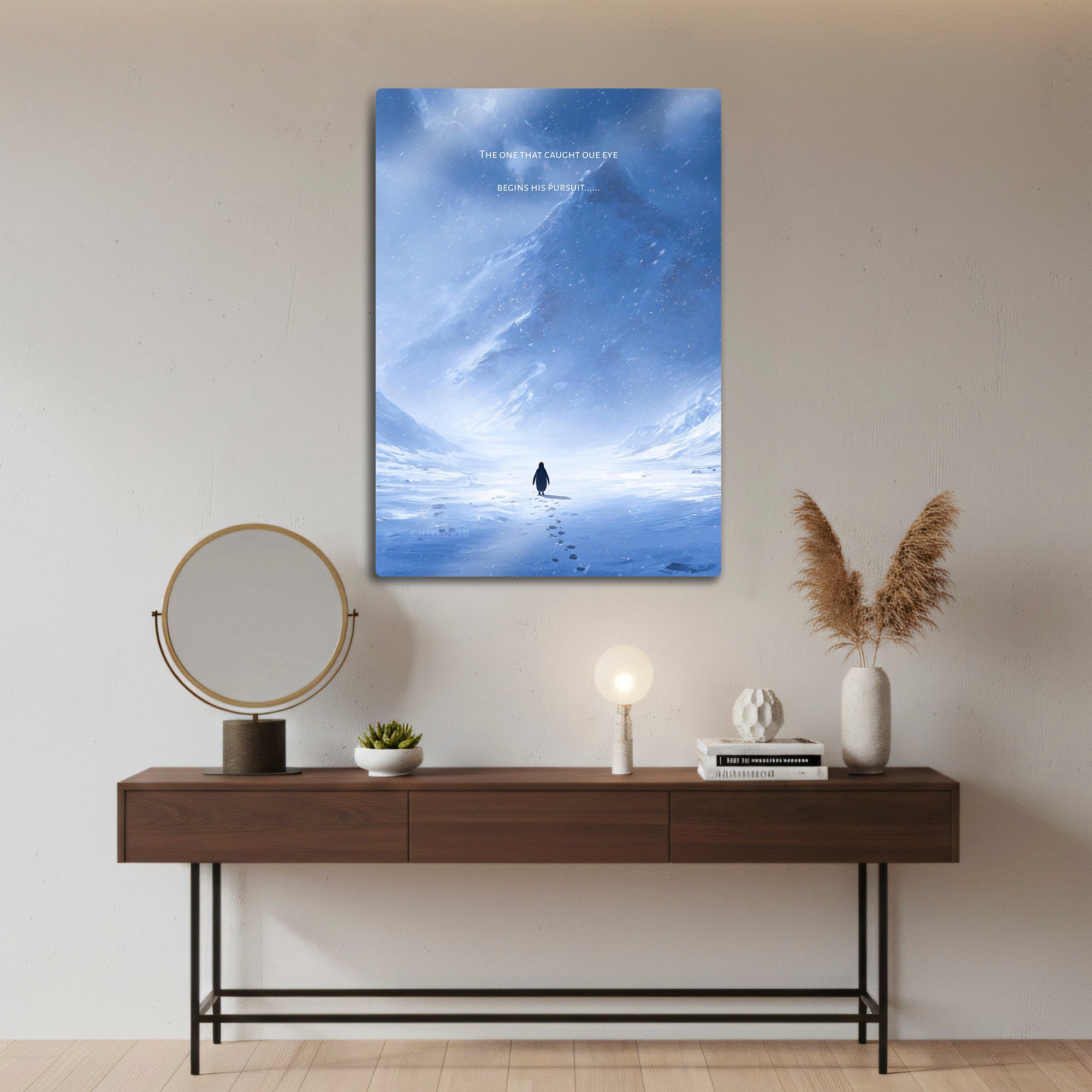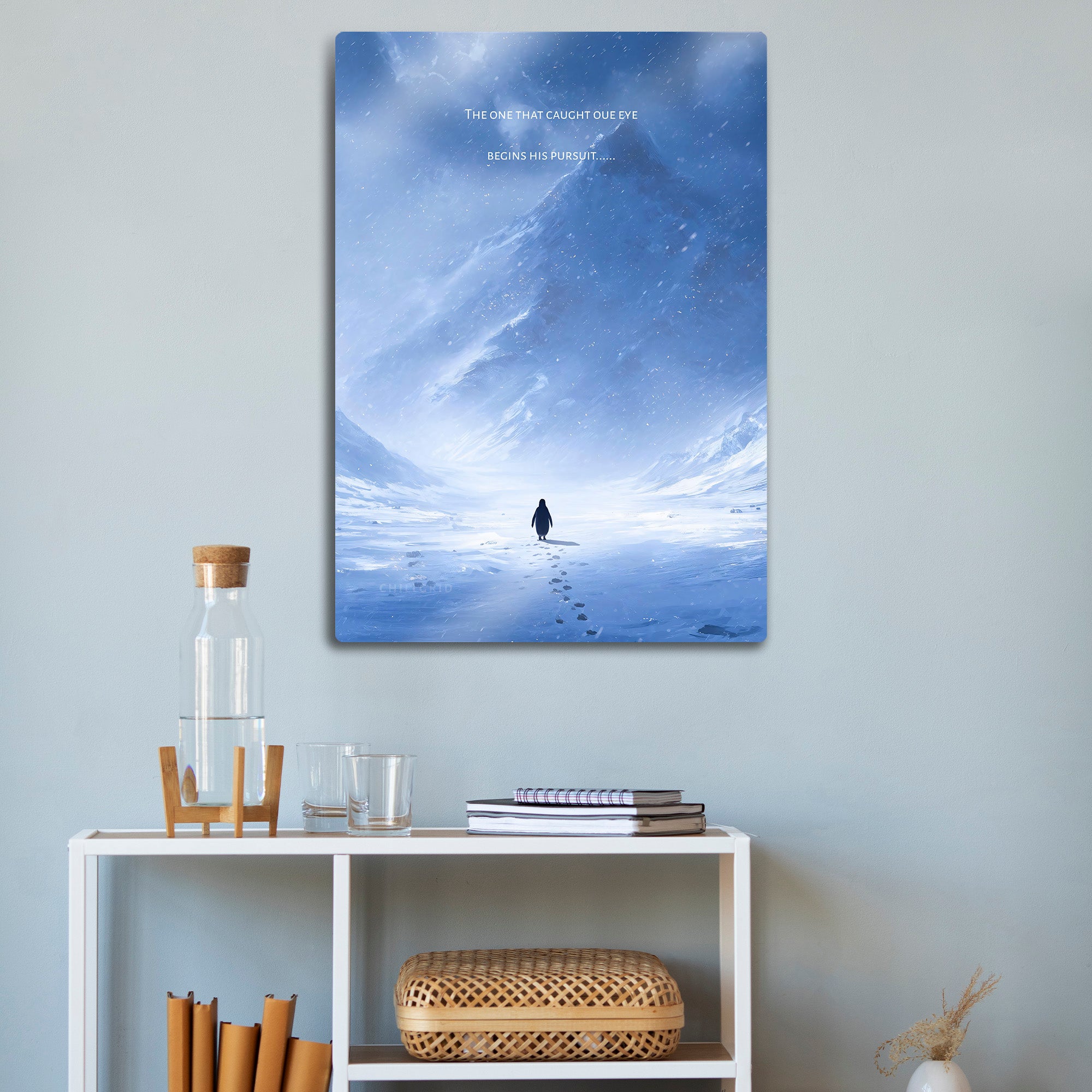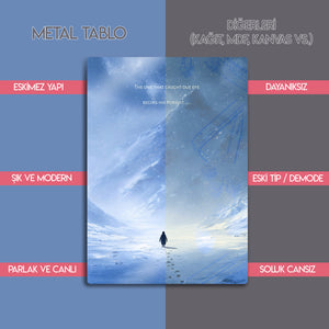 Dünya çapında viral olan ve Werner Herzog’un meşhur belgeseli Encounters at the End of the World (Dünyanın Ucundaki Karşılaşmalar) ile hafızalara kazınan o ikonik sahneden ilham alan bu metal tablo, sadece bir dekorasyon değil, bir duruşun simgesidir. Koloniyi terk edip dağlara doğru tek başına yürüyen o "mecnun" penguenin hikayesi, şimdi duvarlarınızda hayat buluyor.