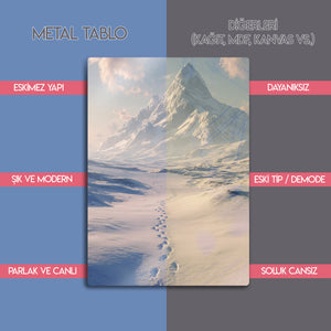 Dünya çapında viral olan ve Werner Herzog’un meşhur belgeseli Encounters at the End of the World (Dünyanın Ucundaki Karşılaşmalar) ile hafızalara kazınan o ikonik sahneden ilham alan bu metal tablo, sadece bir dekorasyon değil, bir duruşun simgesidir. Koloniyi terk edip dağlara doğru tek başına yürüyen o "mecnun" penguenin hikayesi, şimdi duvarlarınızda hayat buluyor.