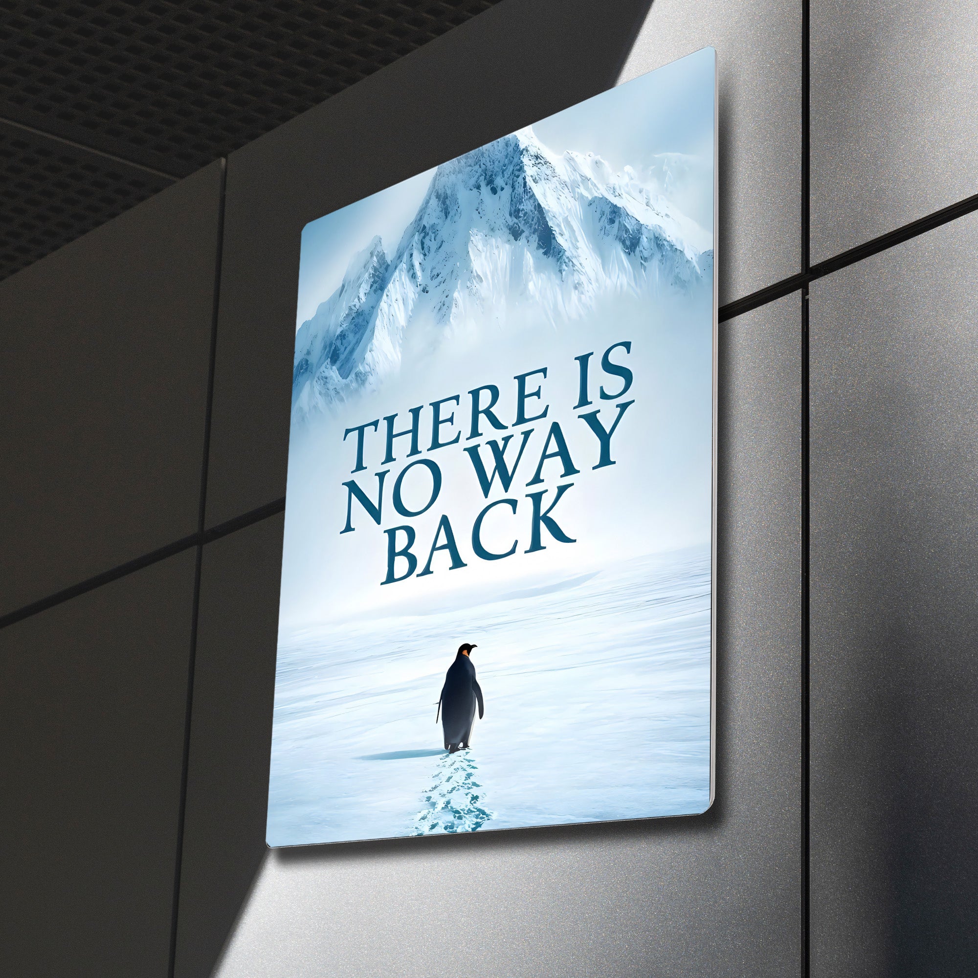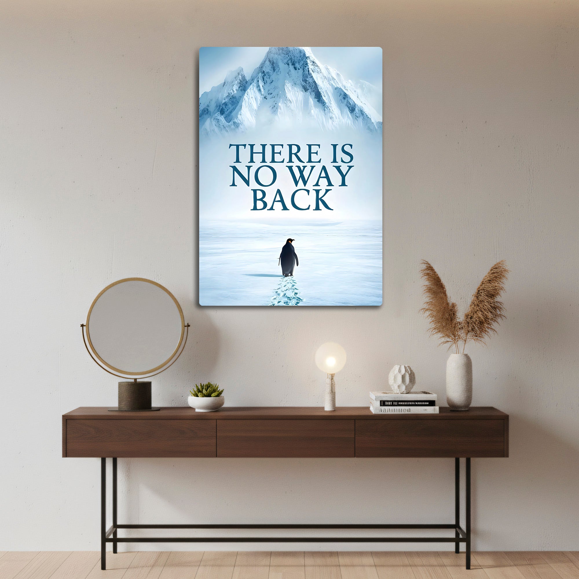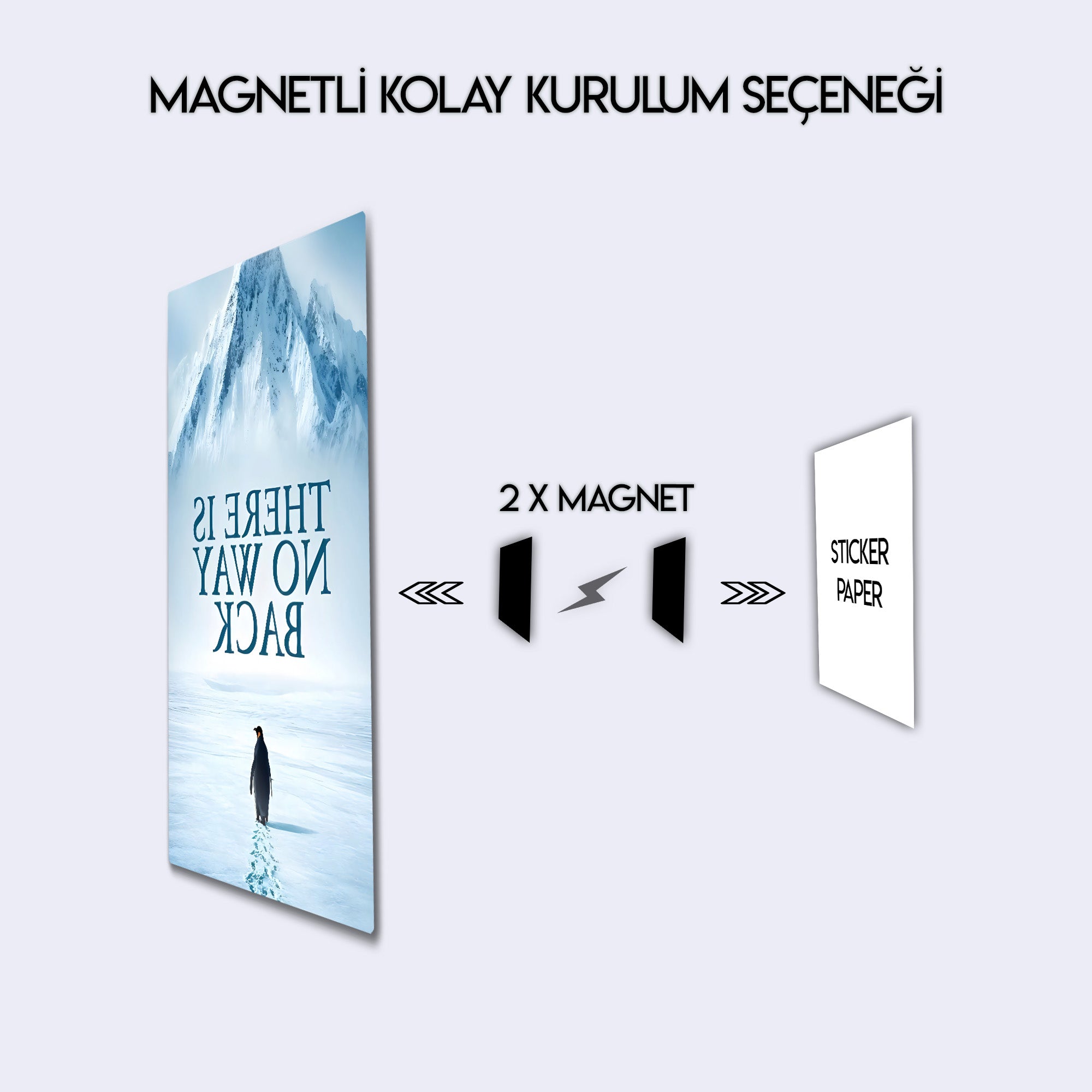 Dünya çapında viral olan ve Werner Herzog’un meşhur belgeseli Encounters at the End of the World (Dünyanın Ucundaki Karşılaşmalar) ile hafızalara kazınan o ikonik sahneden ilham alan bu metal tablo, sadece bir dekorasyon değil, bir duruşun simgesidir. Koloniyi terk edip dağlara doğru tek başına yürüyen o "mecnun" penguenin hikayesi, şimdi duvarlarınızda hayat buluyor.