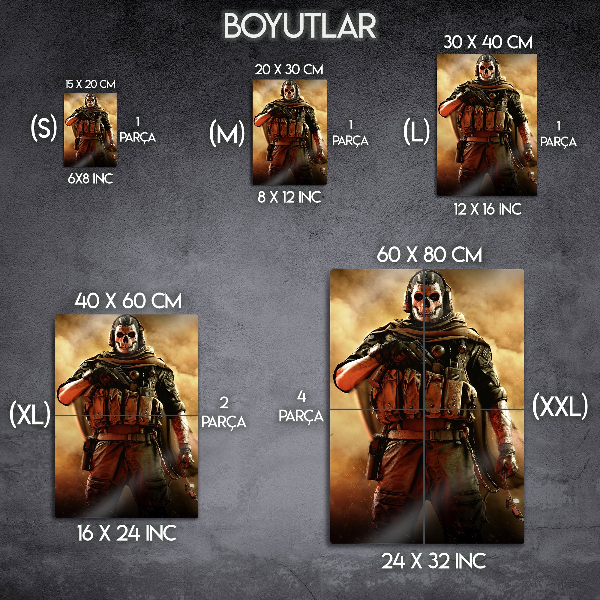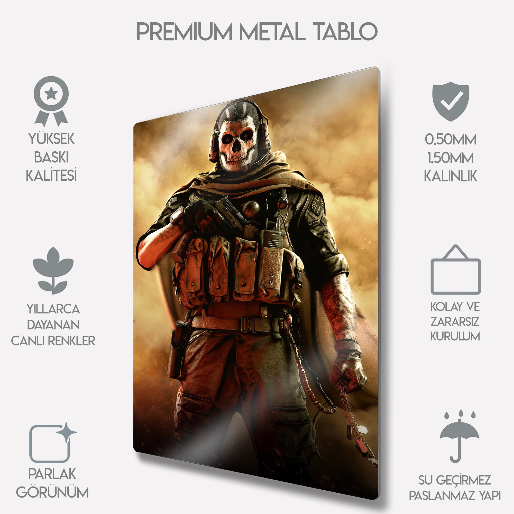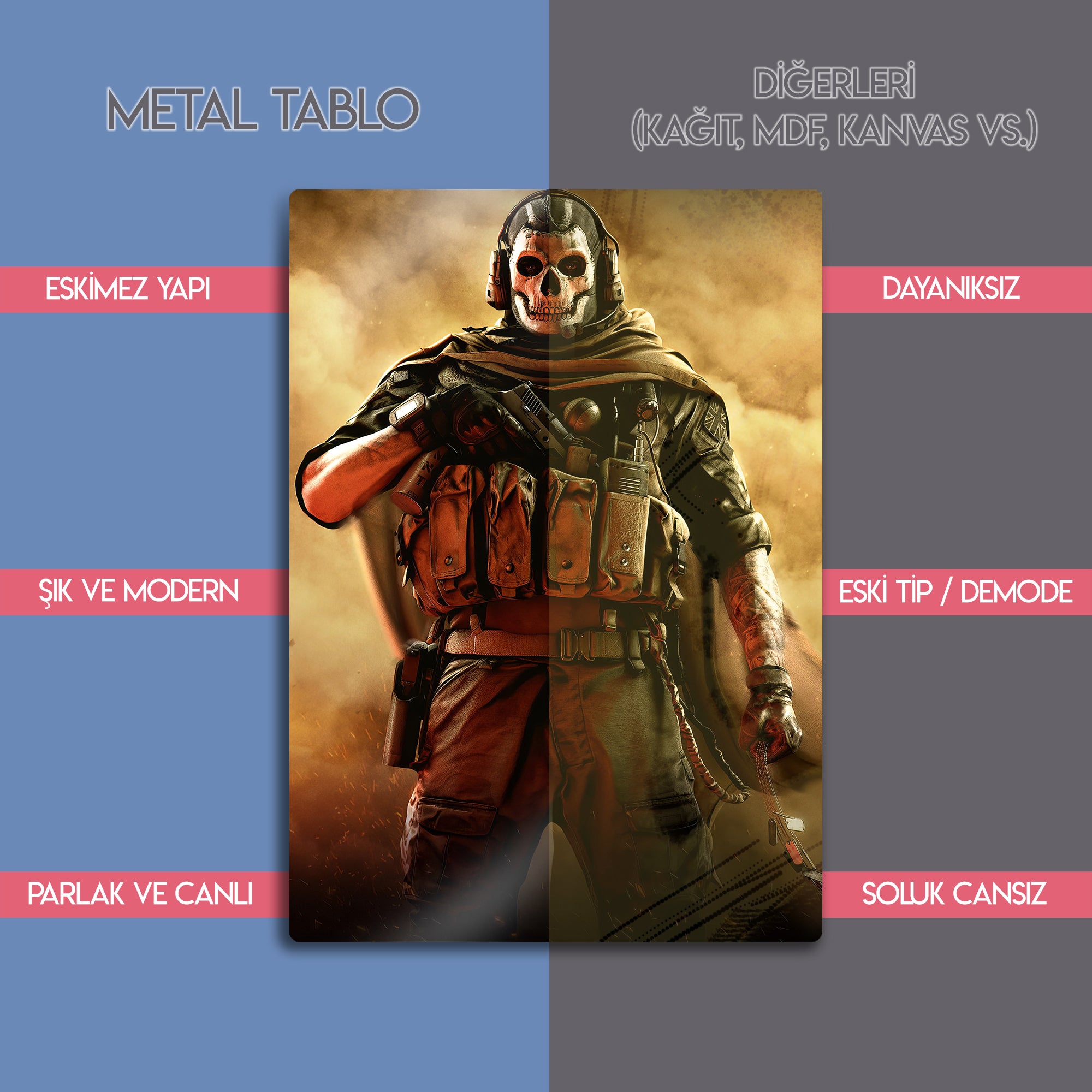 Call of Duty evreninin en ikonik karakterlerinden Ghost, bu özel metal tabloda hayat buluyor. Güçlü duruşu, detaylı tasarımı ve yüksek baskı kalitesiyle oyun ruhunu duvarlarınıza taşıyın.