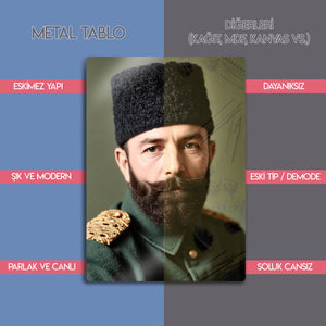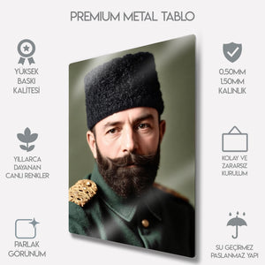 Bu özel metal tablo, İttihat ve Terakki Osmanlı İmparatorluğu’nun önde gelen devlet adamlarından Cemal Paşa’nın portresini yansıtmaktadır. Tarih ve nostalji sevenler için eşsiz bir dekoratif parçadır. Yüksek baskı kalitesi sayesinde uzun ömürlüdür ve ev, ofis ya da koleksiyon köşelerinizde tarihsel bir atmosfer yaratır.