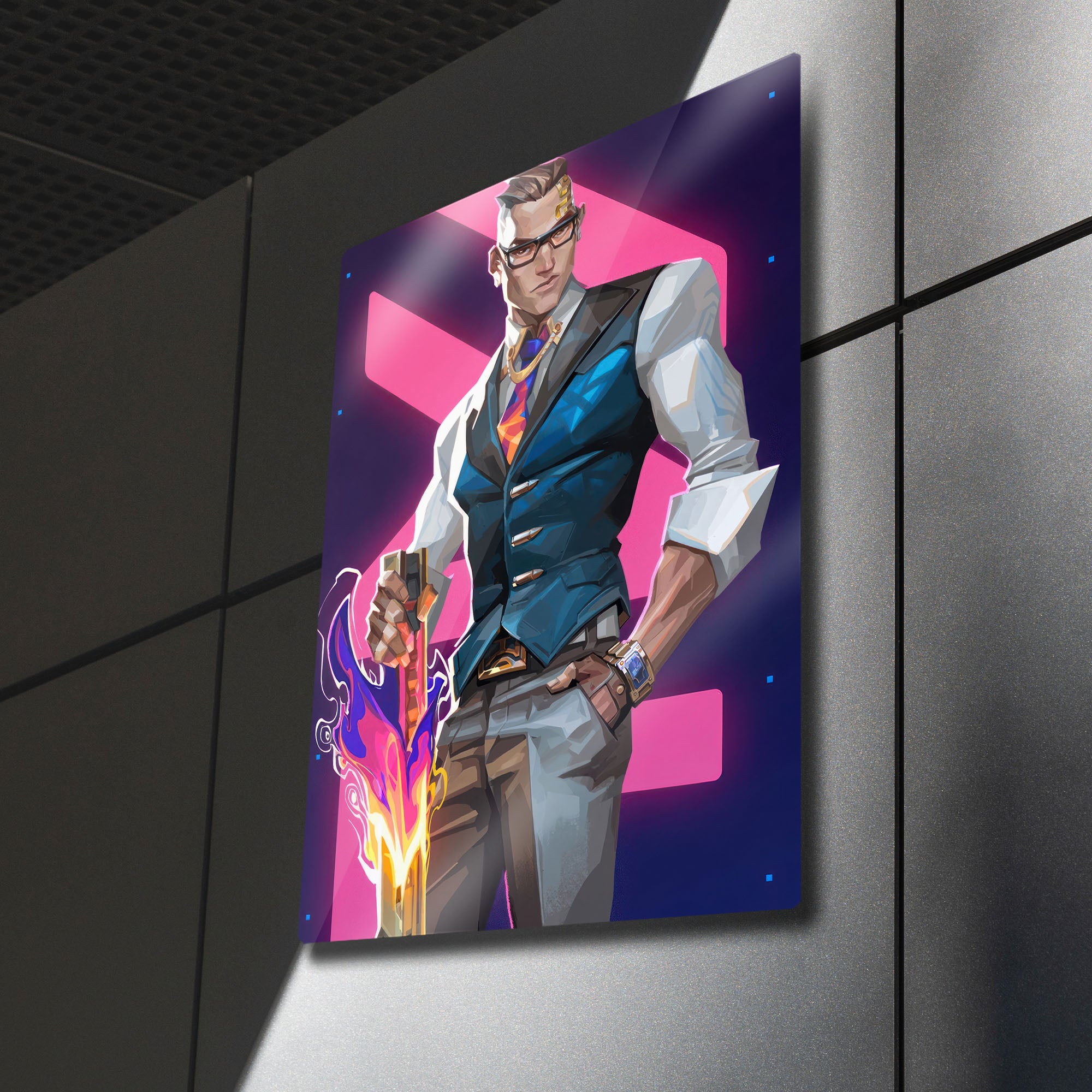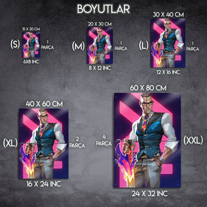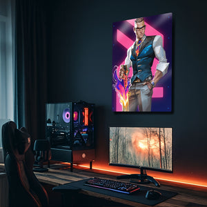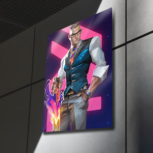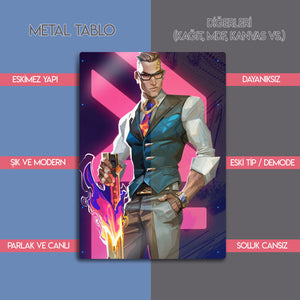 ''You want to play? Let's play.'' ("Oyun mu oynamak istiyorsun? Oynayalım.") Valorant arenasının en şık, en ölümcül ve en kendinden emin ajanı Chamber'ın o sarsılmaz karizmasını duvarlarınıza taşıyın! Bu özel tasarım metal tablo, Chamber'ı, ikonik silahı ve kusursuz stiliyle, canlı ve modern bir sanat yorumuyla ölümsüzleştiriyor.