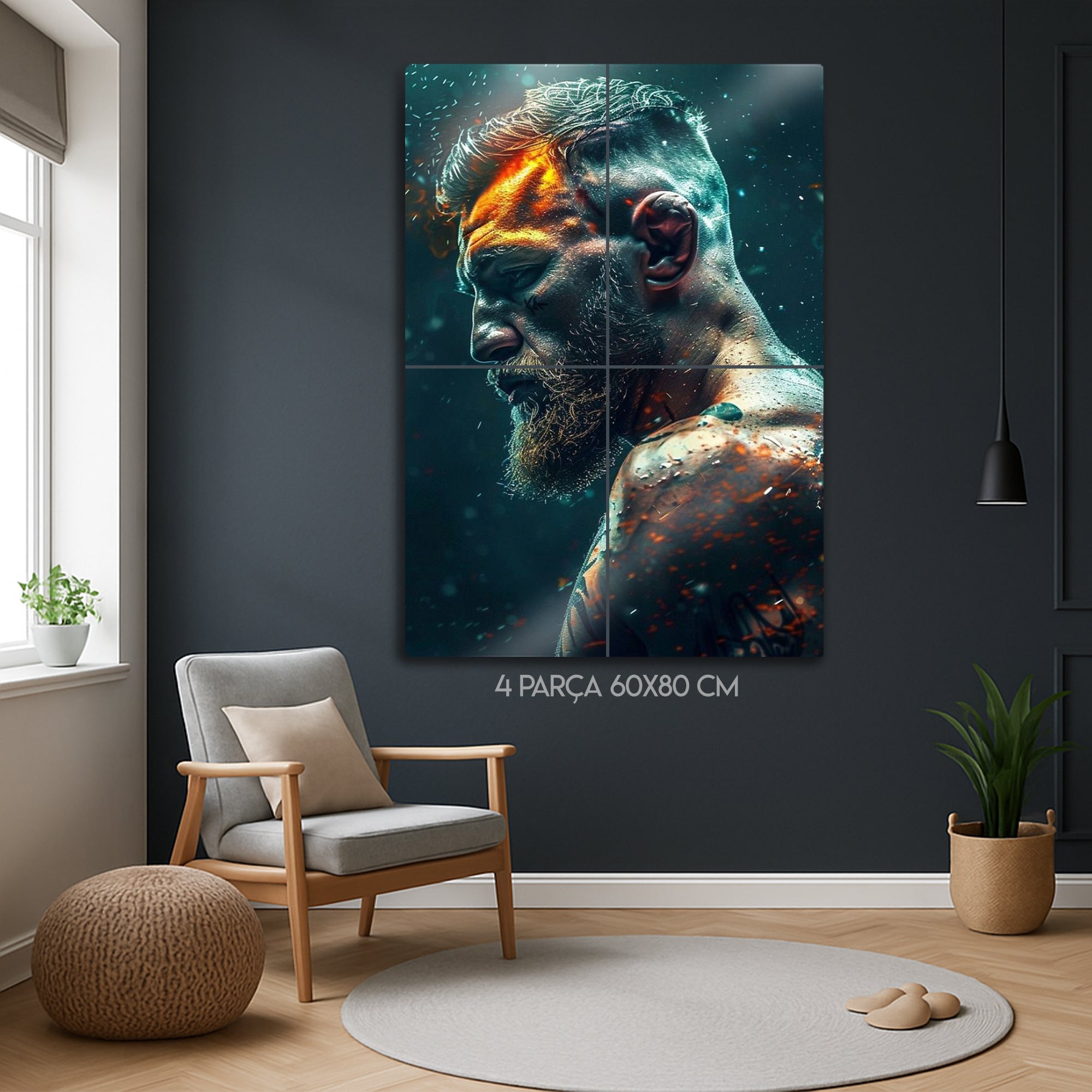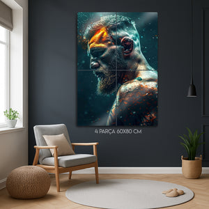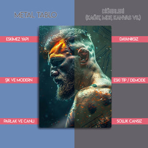 UFC efsanesi Conor McGregor’un güçlü ve kararlı duruşunu yansıtan bu özel metal tablo, dövüş sporları ve motivasyonun simgesidir. Siyah-beyaz kontrastı, dövmeleri ve ikonik pozuyla modern dekorunuza cesur bir hava katar.