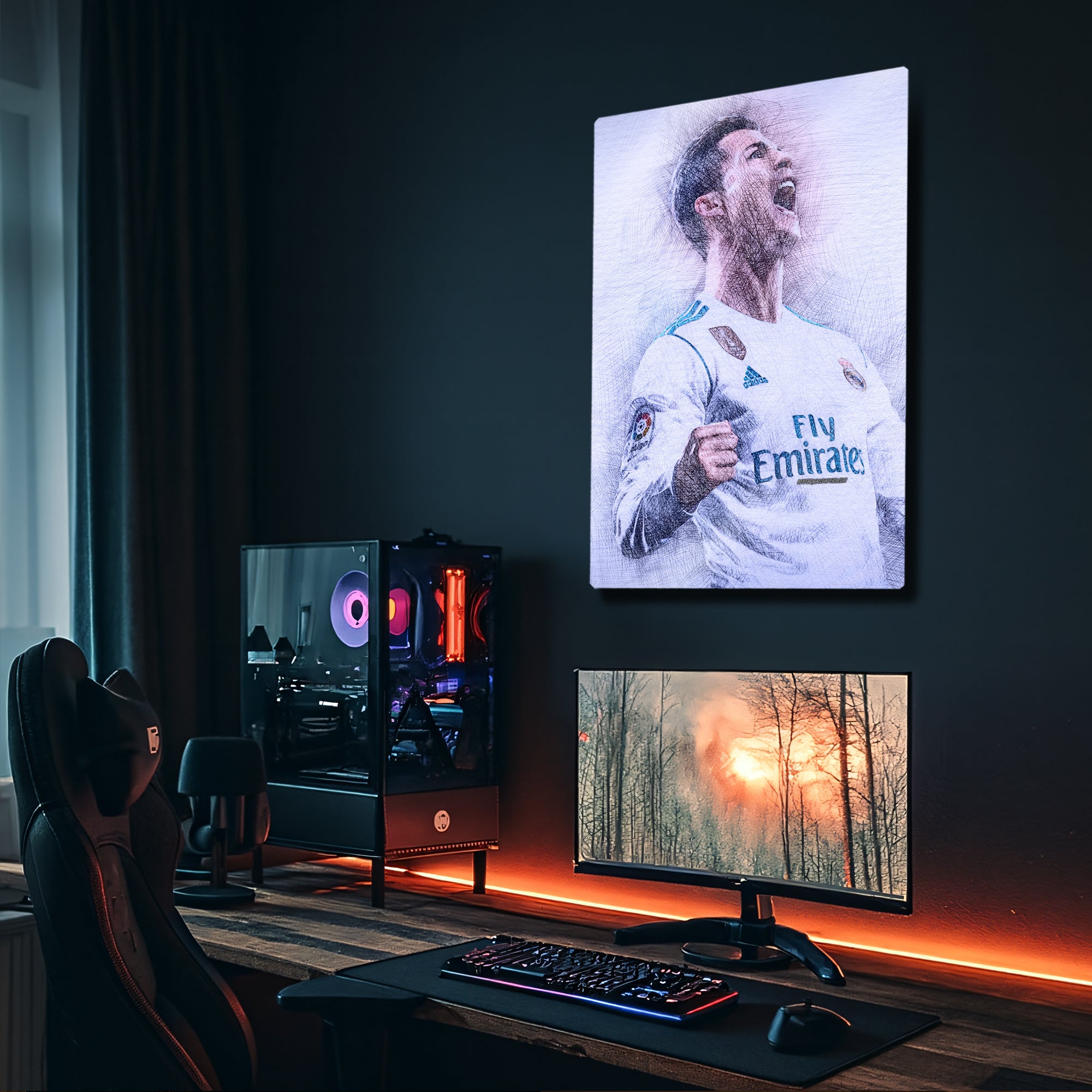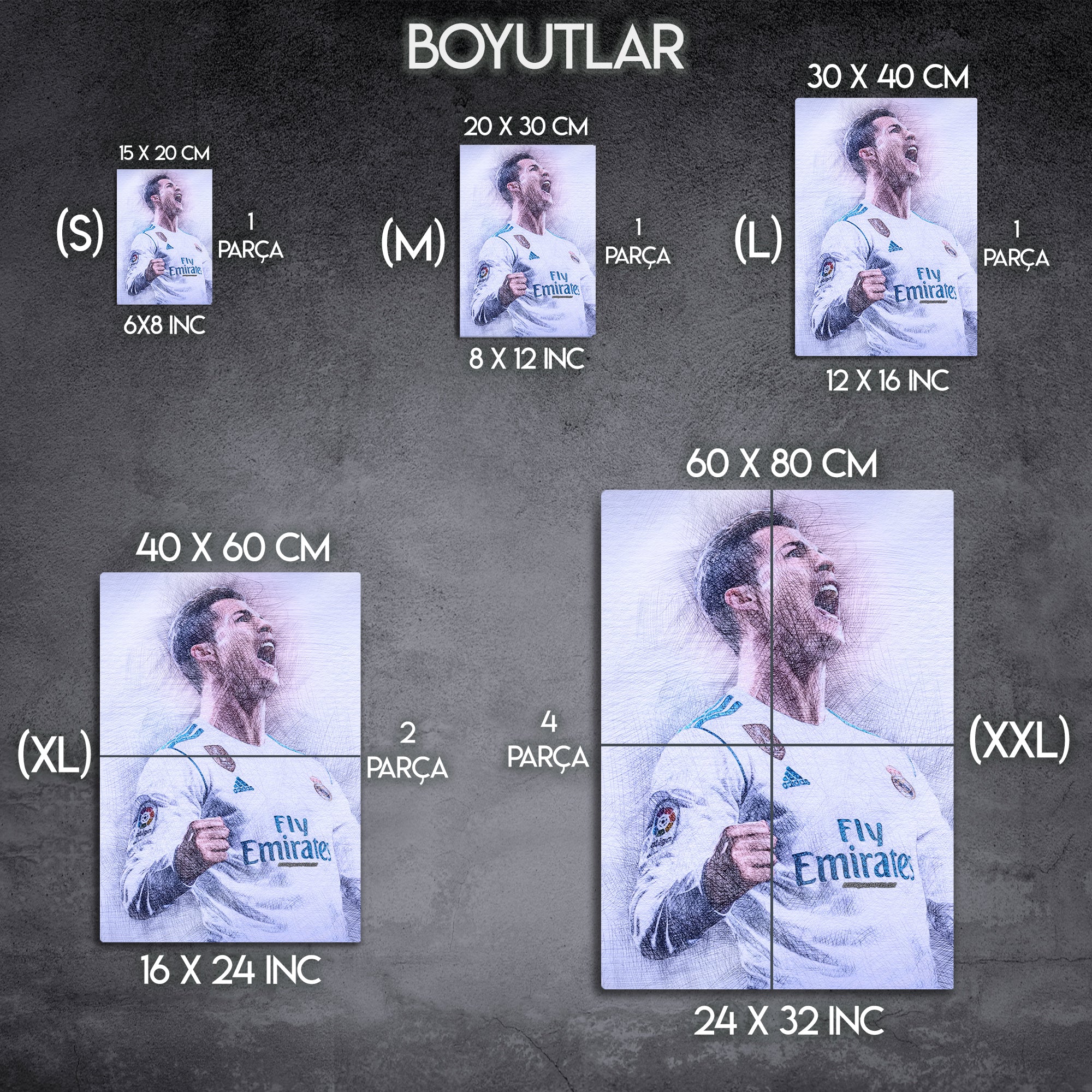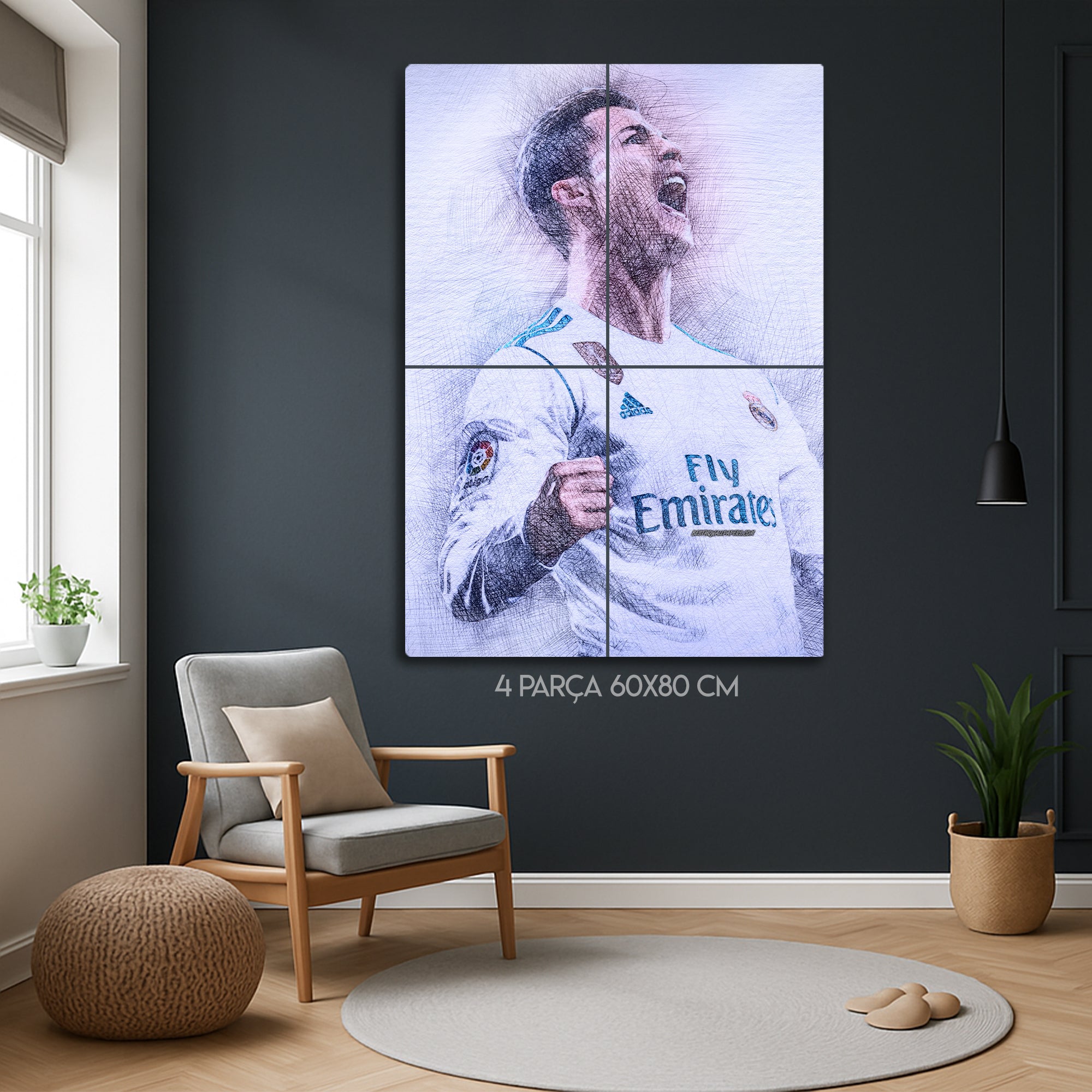 Modern ve şık tasarımıyla öne çıkan bu tablo, oturma odaları, genç odaları, spor salonları ve futbol koleksiyon köşeleri için mükemmel bir dekoratif üründür. Ayrıca Ronaldo hayranı sevdiklerinize hediye edebileceğiniz eşsiz bir parçadır.