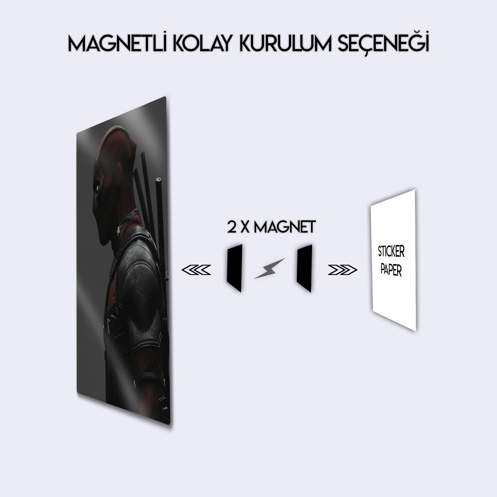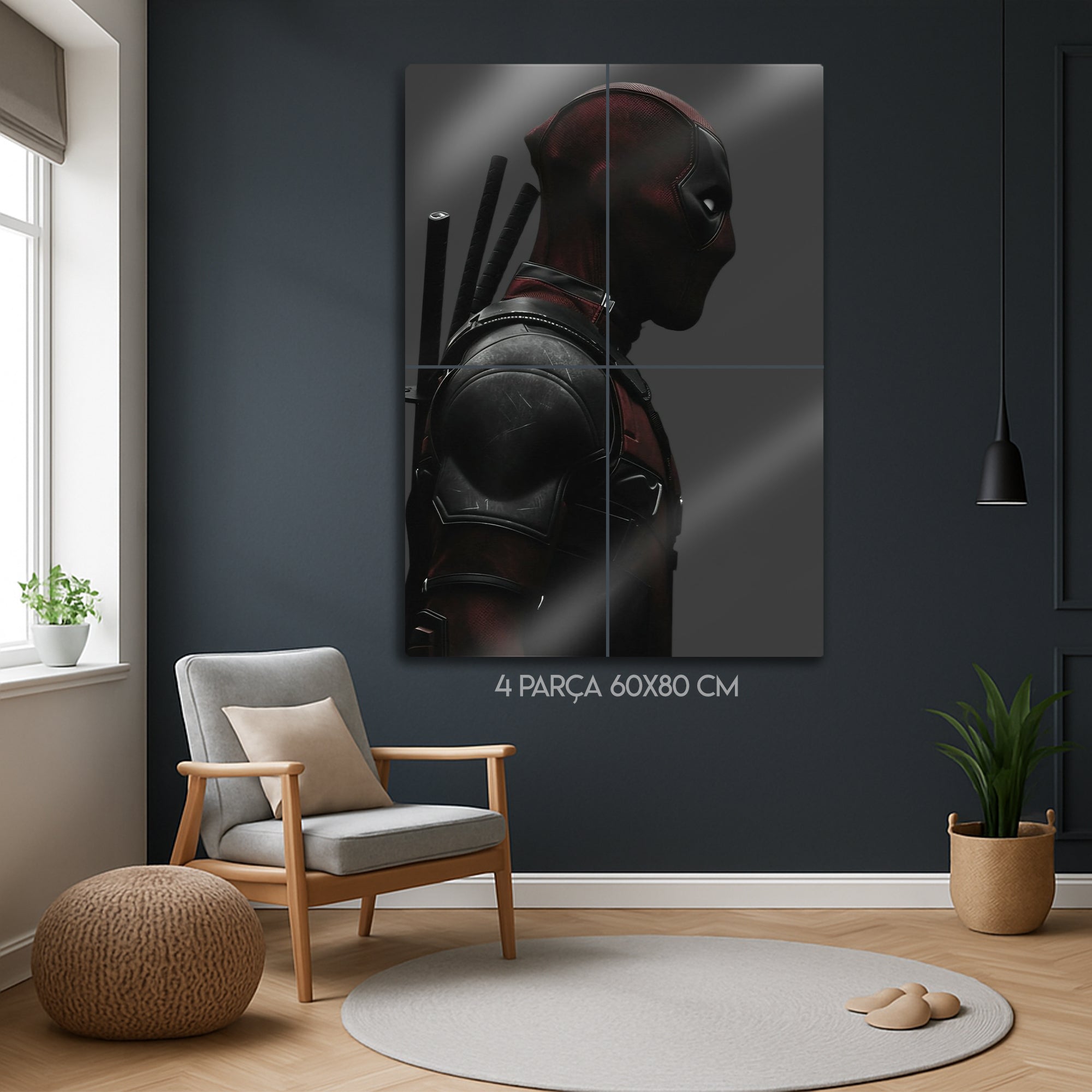 Deadpool Yan Profil Kılıçlı Marvel - Metal Tablo