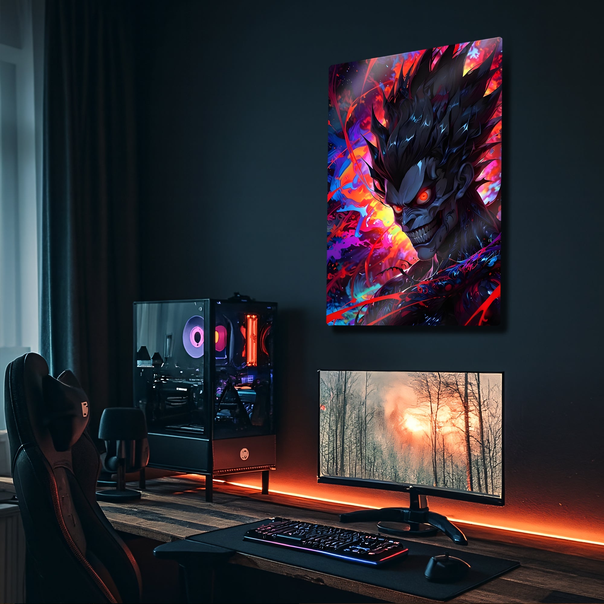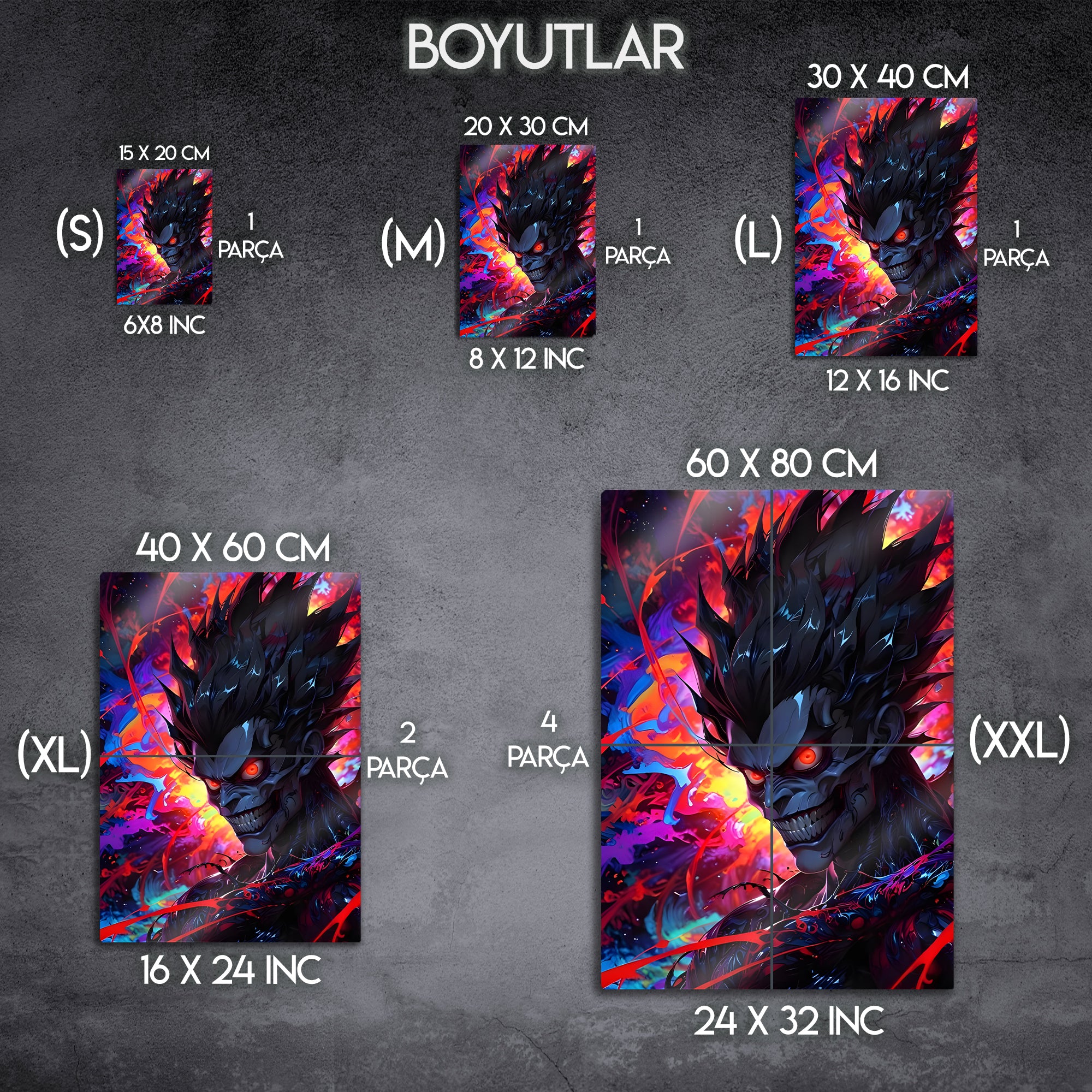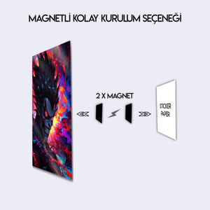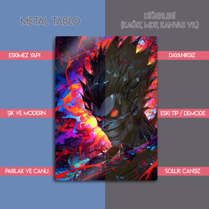 Anime dünyasının unutulmaz yapımlarından Death Note’un en gizemli karakteri Ryuk, bu özel tasarım metal tablo ile duvarlarınıza karanlık ve mistik bir hava katıyor. Canlı renkler ve detaylı baskı kalitesi sayesinde her ortamda dikkat çekici bir dekoratif parça olur. Anime severler, manga hayranları ve koleksiyon tutkunları için eşsiz bir seçimdir. Modern tasarımıyla genç odası, ofis ya da oturma alanlarında farklı bir atmosfer yaratır. Ayrıca hediye alternatifi olarak da mükemmeldir.