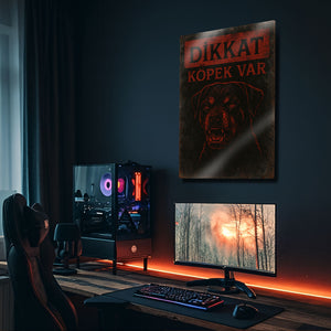 Bu metal tabela, hem misafirlerinizi esprili bir şekilde uyarmanın hem de mekanınıza endüstriyel ve vintage bir hava katmanın en havalı yoludur. Bahçe kapınızda, evinizin girişinde, garajınızda veya "man cave"inizde güçlü bir odak noktası oluşturacak bu eser, dayanıklı yapısıyla dış mekan koşullarına da meydan okur.