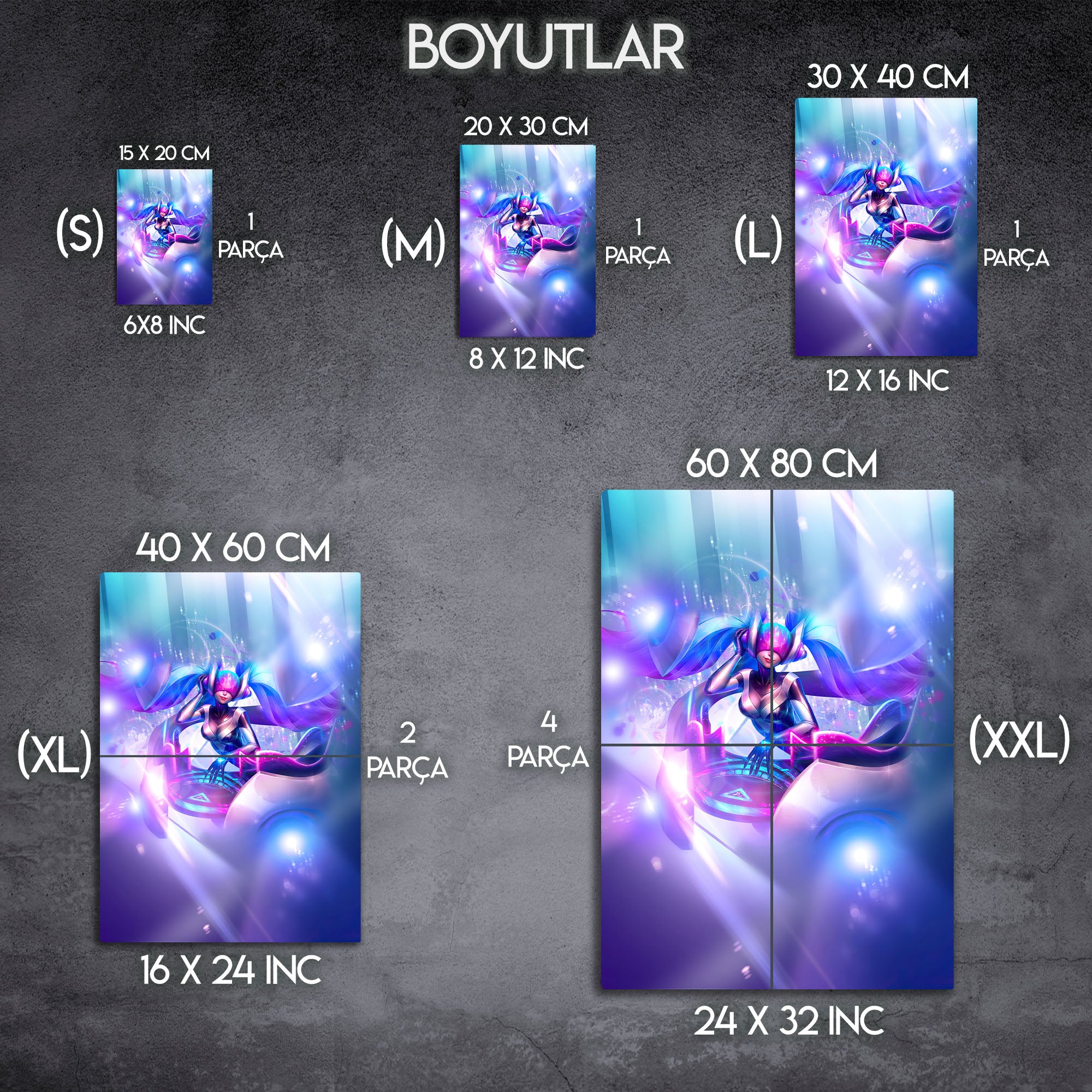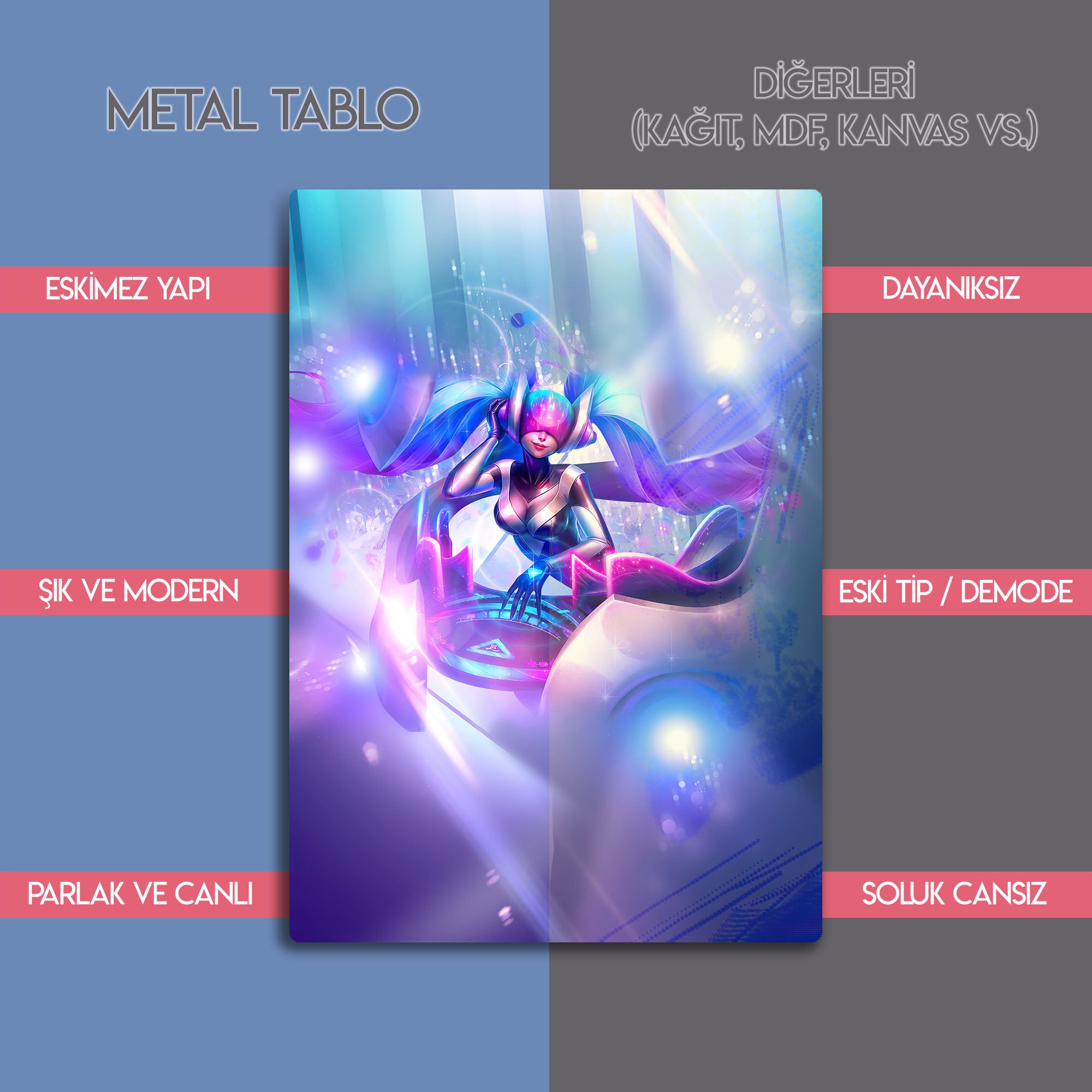 League of Legends karakteri, Dj Sona tablosu şimdi sizlerle. Evinize, ofisinize, duvarınıza renk katacak eşsiz koleksiyonda bir tablo.
