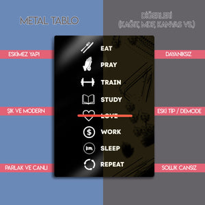Eat Pray Train Study Work Sleep Repeat - Metal Tablo