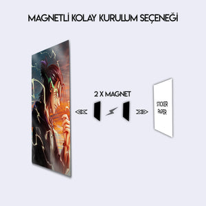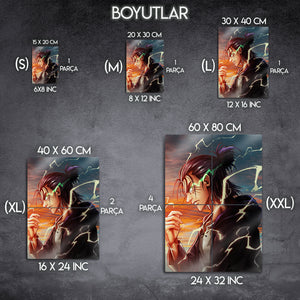 Anime dünyasının unutulmaz serilerinden Attack on Titan (Shingeki no Kyojin)’in ana karakteri Eren Yeager, bu özel tasarım metal tabloyla odanızı benzersiz bir atmosfere dönüştürüyor. Güçlü çizimleri, dramatik detayları ve modern tasarımıyla bu tablo; anime hayranları için koleksiyon değeri taşıyor. İster evinizin duvarında ister çalışma alanınızda sergileyin, bu dekoratif metal tablo anime tutkunları için vazgeçilmezdir.