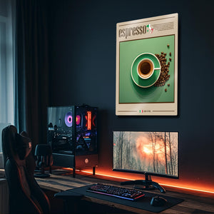 Elegant ve Bilgilendirici Tasarım: Espresso hakkında bilgi verirken aynı zamanda retro ve şık bir görünüm sunar.