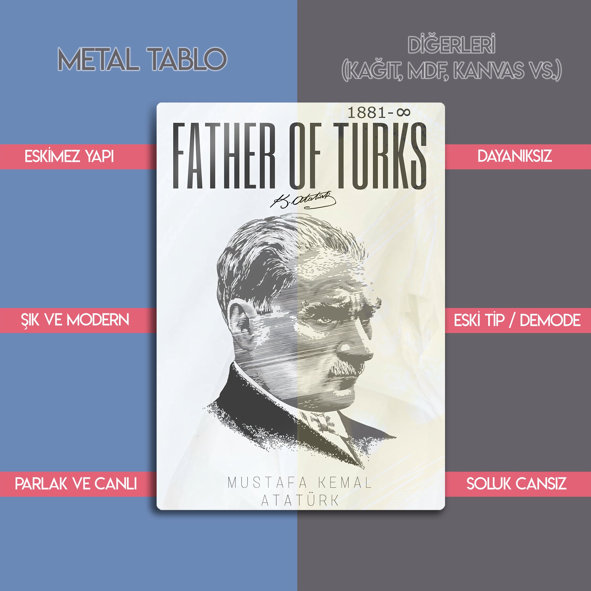 Father of Turks Atatürk Tablosu Modern - Metal Tablo