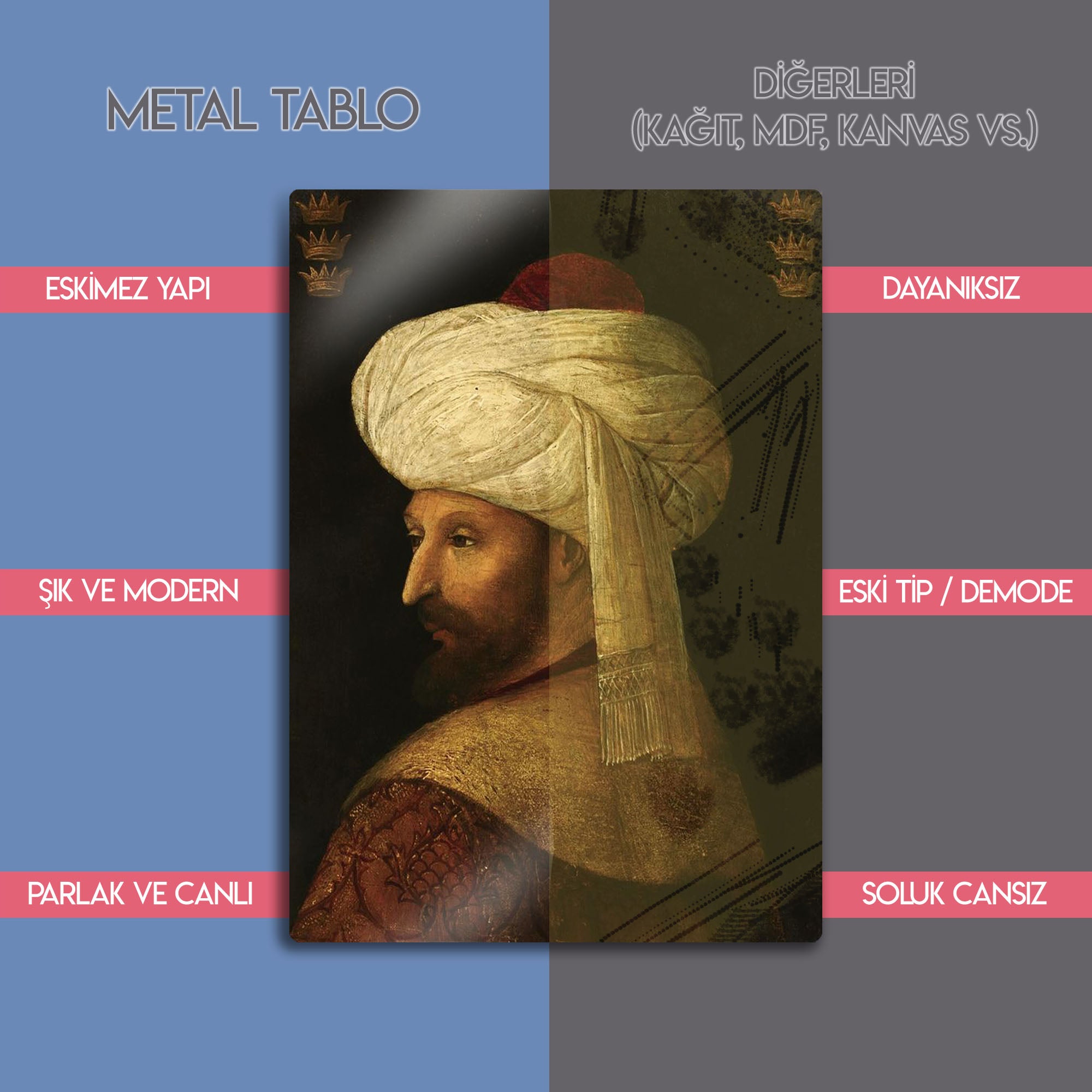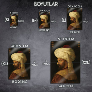 Fatih Sultan Mehmet Osmanlı metal tablosu şimdi sizlerle. Evinize, ofisinize, duvarınıza renk katacak eşsiz koleksiyonda bir dekoratif tablo. Özel çerçeve seçenekleri, farklı tarzda seçilebilir boyutlar ile sipariş verebilirsiniz.