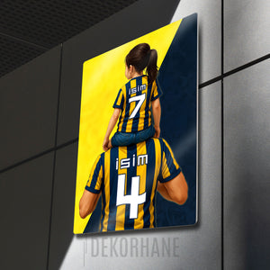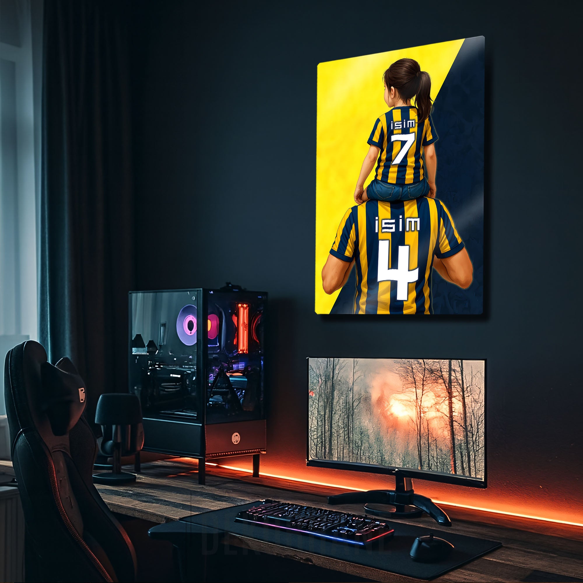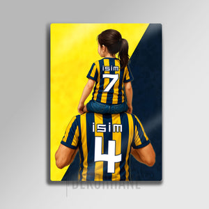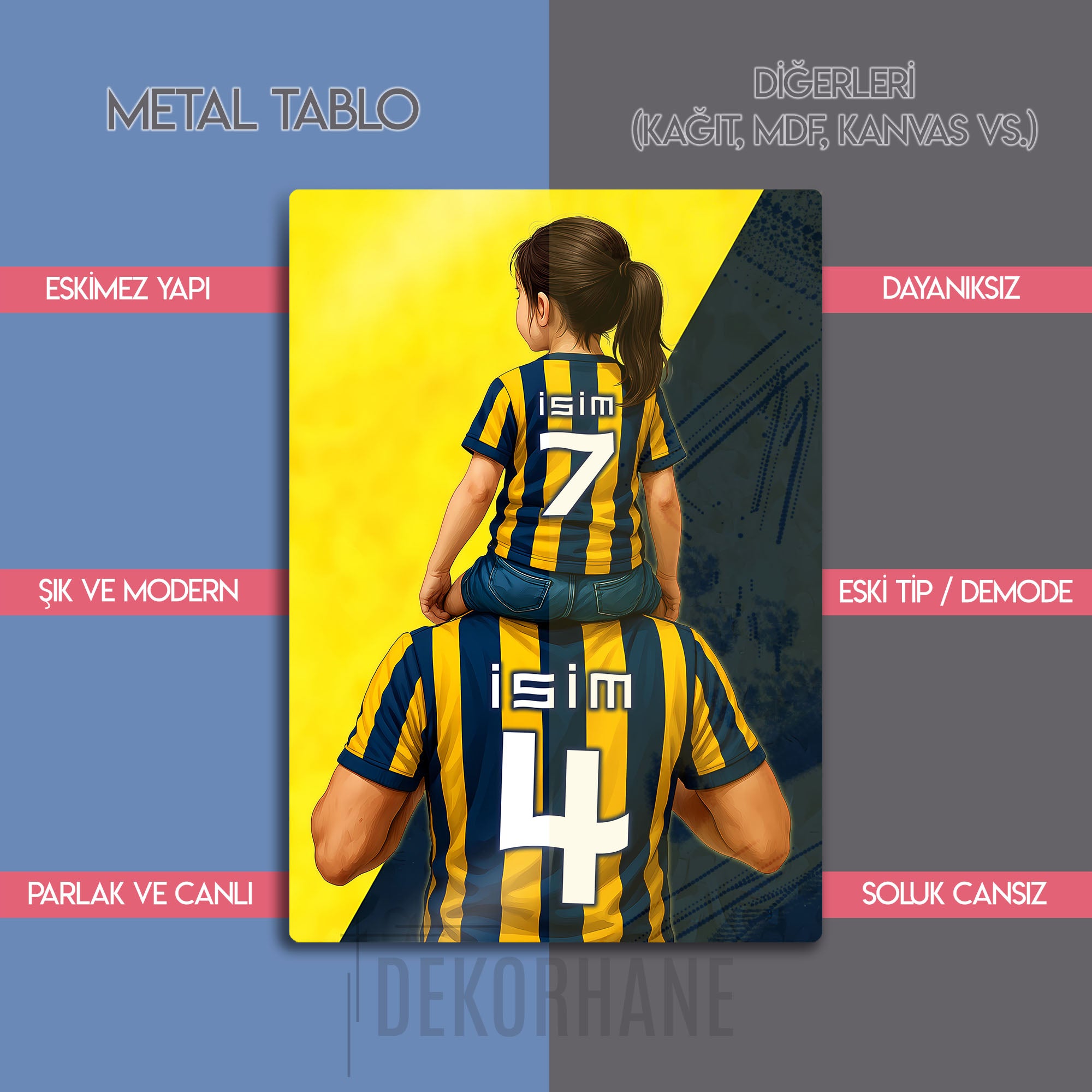 Bir babanın omuzlarında geleceğin "dişi kanaryasını" taşıdığı bu sevgi dolu anı, Dekorhane.com'un özel tasarım metal tablosuyla evinize geliyor. Takınımıza olan bağlılığınızı ve ailenizle paylaştığınız bu eşsiz tutkuyu, şimdi tamamen size özel isimlerle taçlandırın.