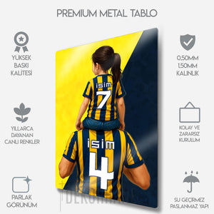 Sarı Lacivert Baba Kız Çocuk - Kişiselleştirilebilir Metal Tablo