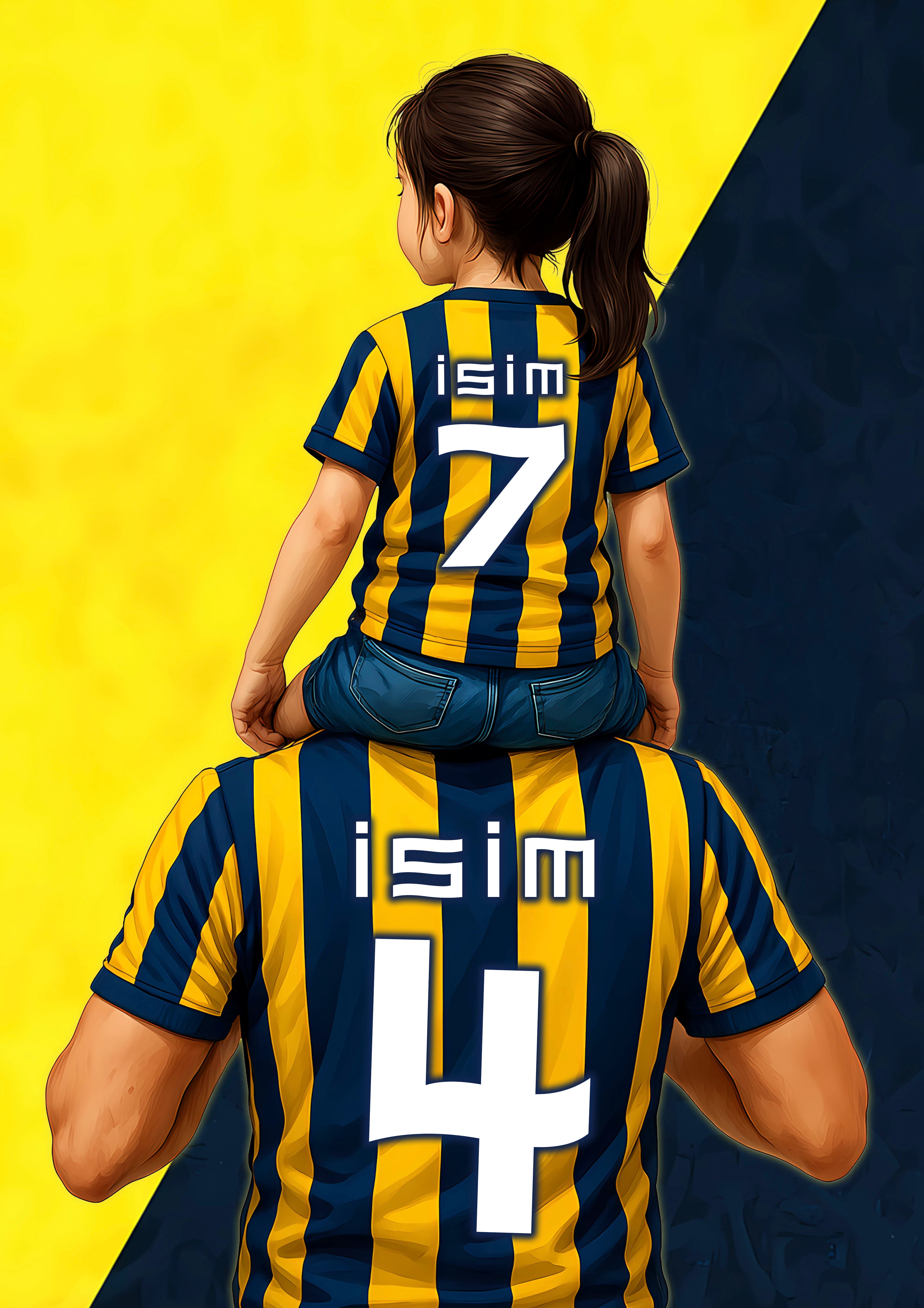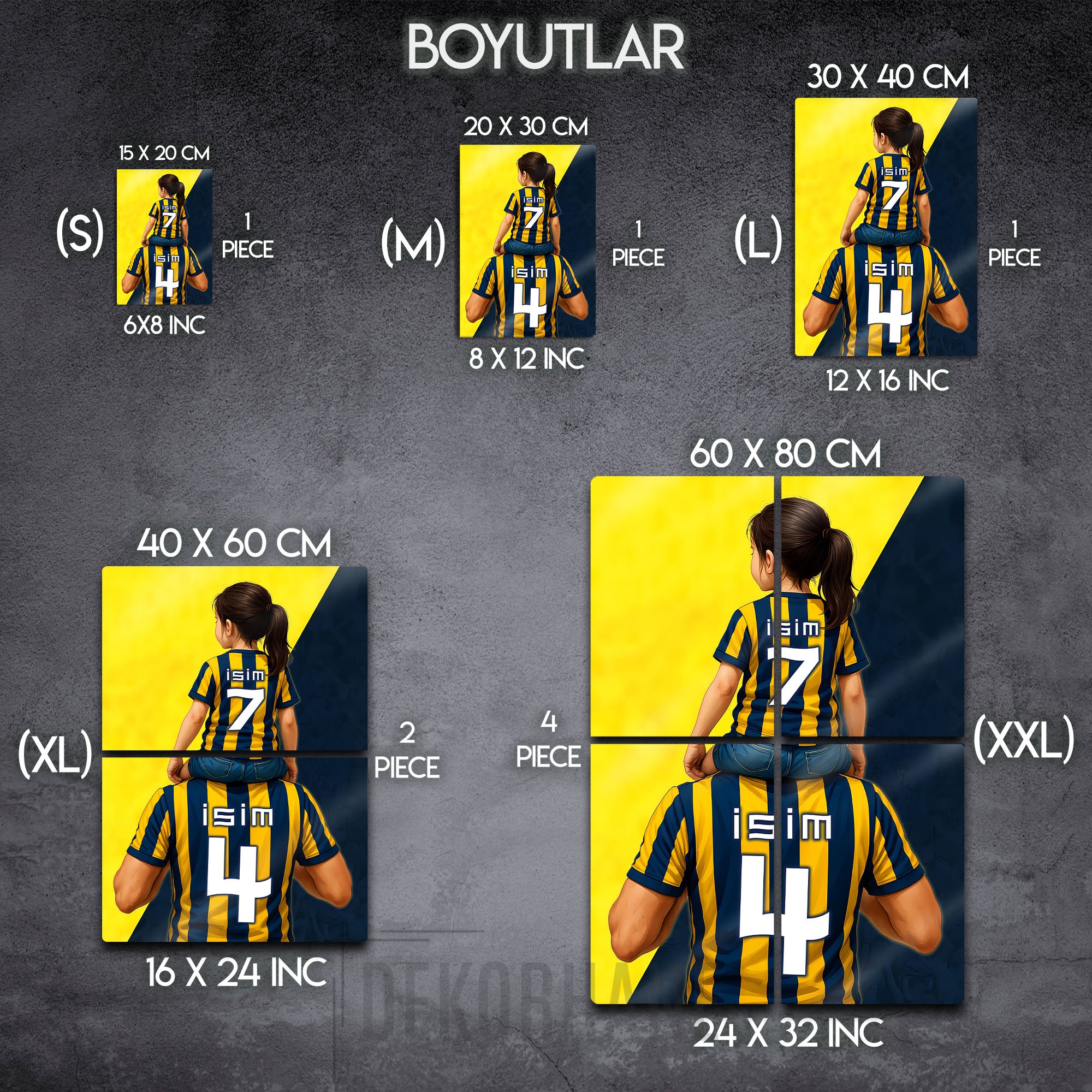 Tablo üzerindeki "isim" alanlarına, hem baba hem de kız formasına dilediğiniz isimleri yazdırarak bu anlamlı tasarımı tamamen kendinize özel hale getirebilirsiniz. Bu kişiselleştirme, tabloyu sadece size ait kılmakla kalmaz, aynı zamanda onu unutulmaz bir hediye seçeneğine dönüştürür.