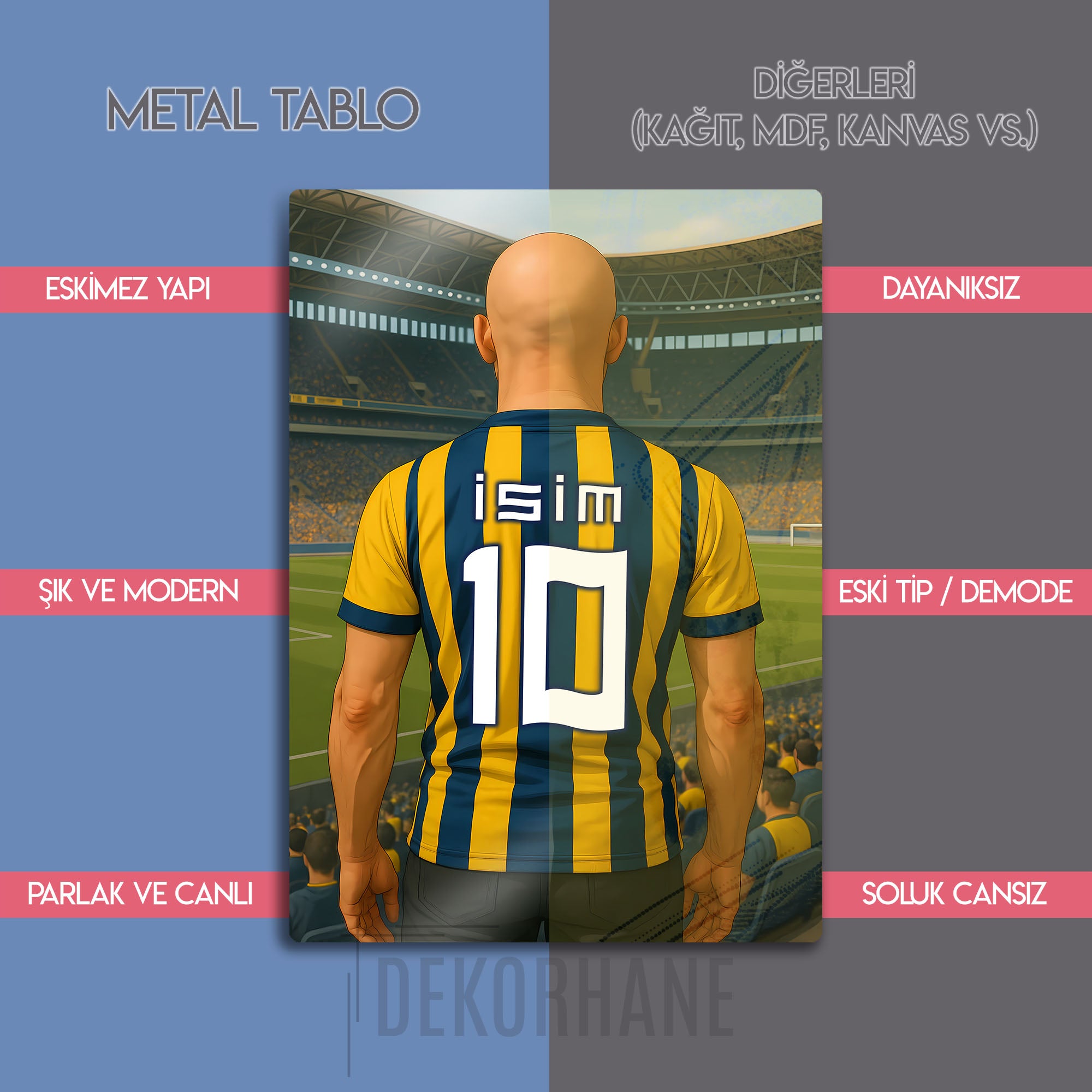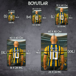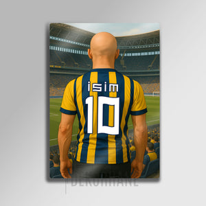 On binlerce taraftarın tek yürek olduğu Şükrü Saracoğlu Stadyumu'nun büyülü atmosferini, Dekorhane.com'un bu özel tasarım metal tablosuyla evine veya ofisine taşı. Sahaya çıkan bir kahraman gibi, efsanevi çubuklu formayı sırtına geçirmiş bir taraftarın bu gurur dolu anı, şimdi senin ismin ve numaranla hayat buluyor.