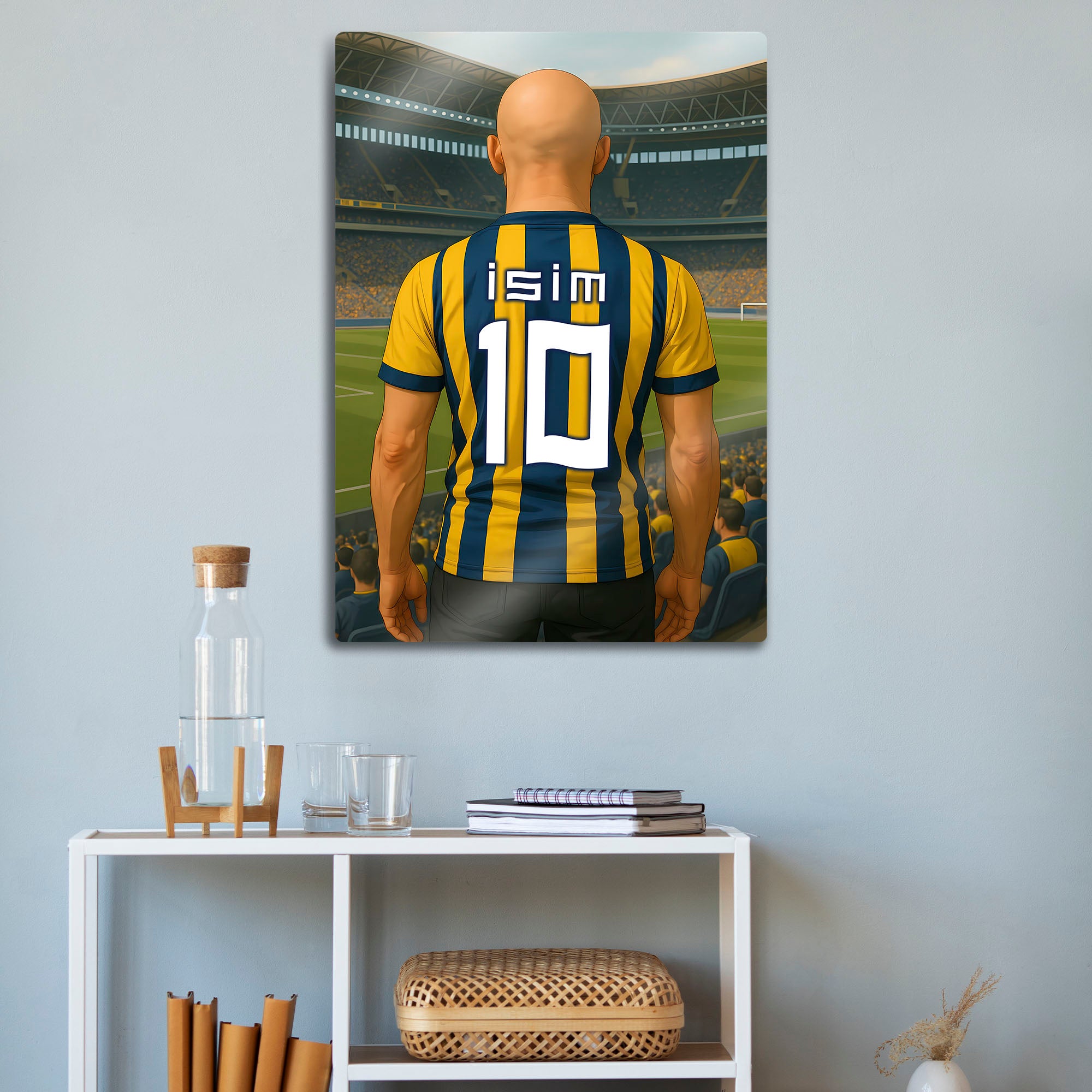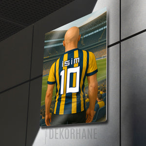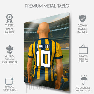 Sarı Lacivert Bireysel Stadyum Temalı Kel - Kişiselleştirilebilir Metal Tablo