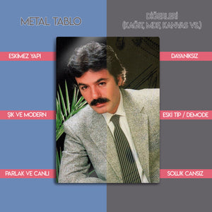 Ferdi Tayfur metal tablosu şimdi sizlerle. Evinize, ofisinize, duvarınıza renk katacak eşsiz koleksiyonda bir dekoratif tablo. Farklı tarzda seçilebilir boyutlar ile sipariş verebilirsiniz.