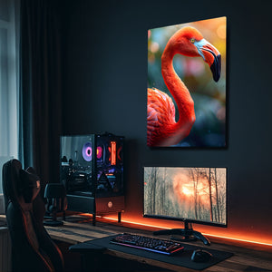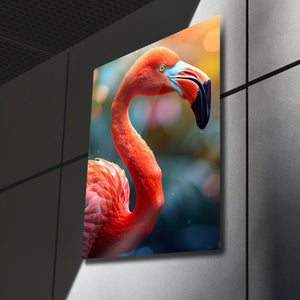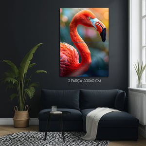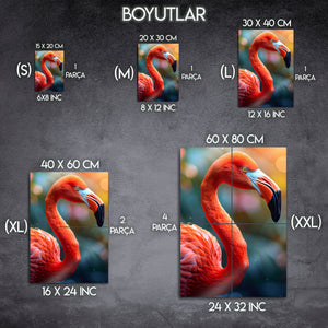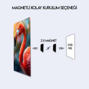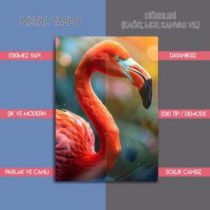 Bu özel flamingo temalı metal tablo, tropikal estetiği ve canlı renkleriyle evinizin veya ofisinizin dekorasyonuna zarif bir dokunuş katar. Yüksek çözünürlüklü baskı kalitesi sayesinde flamingonun göz alıcı kırmızı ve turuncu tonları, detaylı tüy yapısı ve tropikal atmosferi her açıdan dikkat çeker.