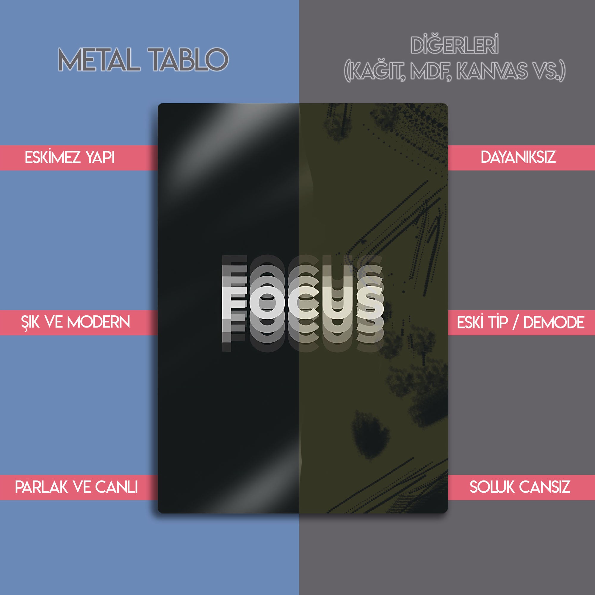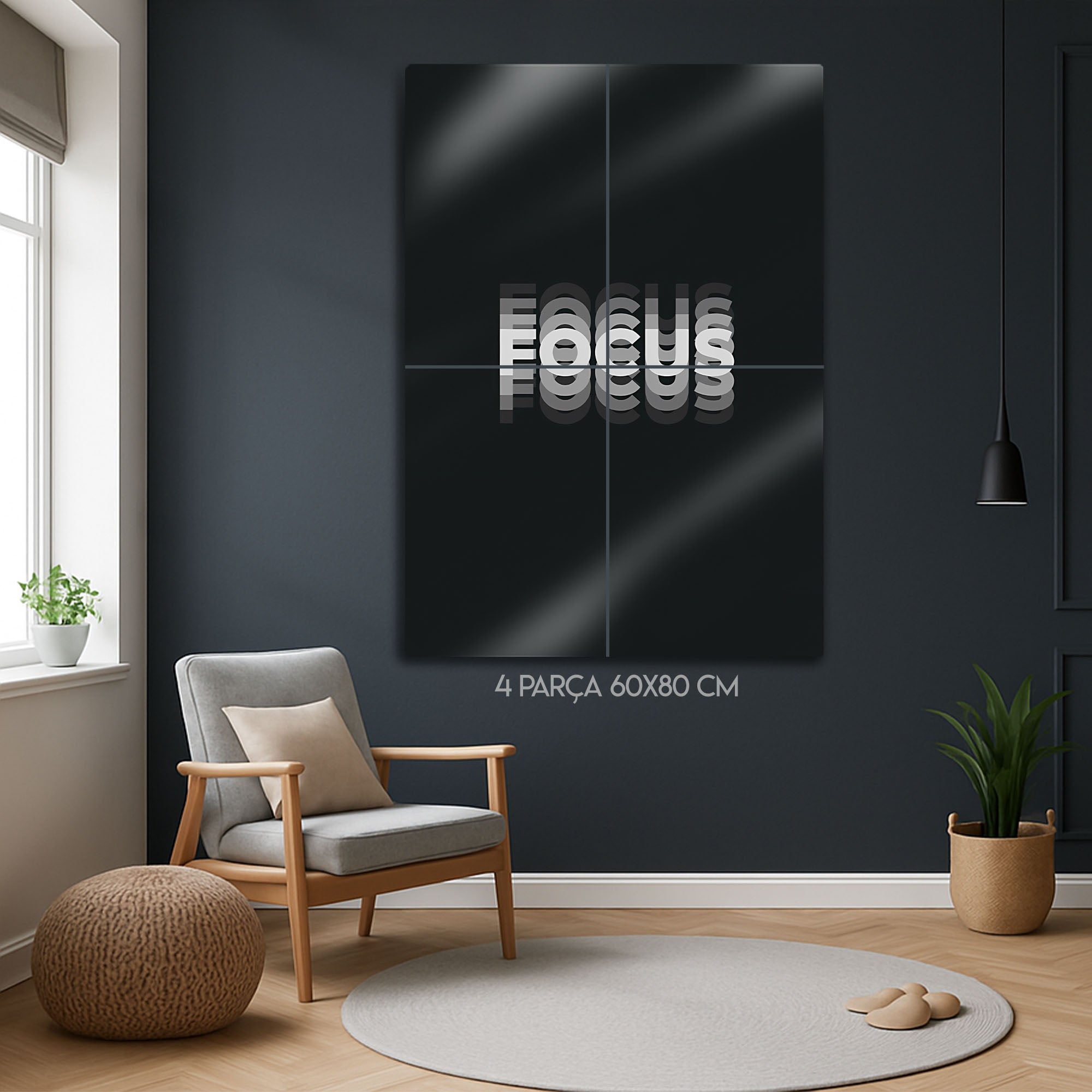 Bu Focus metal tablo, modern minimalist tasarımı ve güçlü mesajı ile yaşam alanlarınıza odaklanma ve motivasyon katıyor. Çalışma odası, ofis, ev dekorasyonu veya hediye olarak mükemmel bir tercihtir.