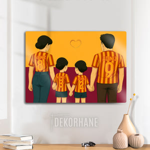 Galatasaray Aile Baba Anne 2 Kız Çocuk - Kişiselleştirilebilir Metal Tablo