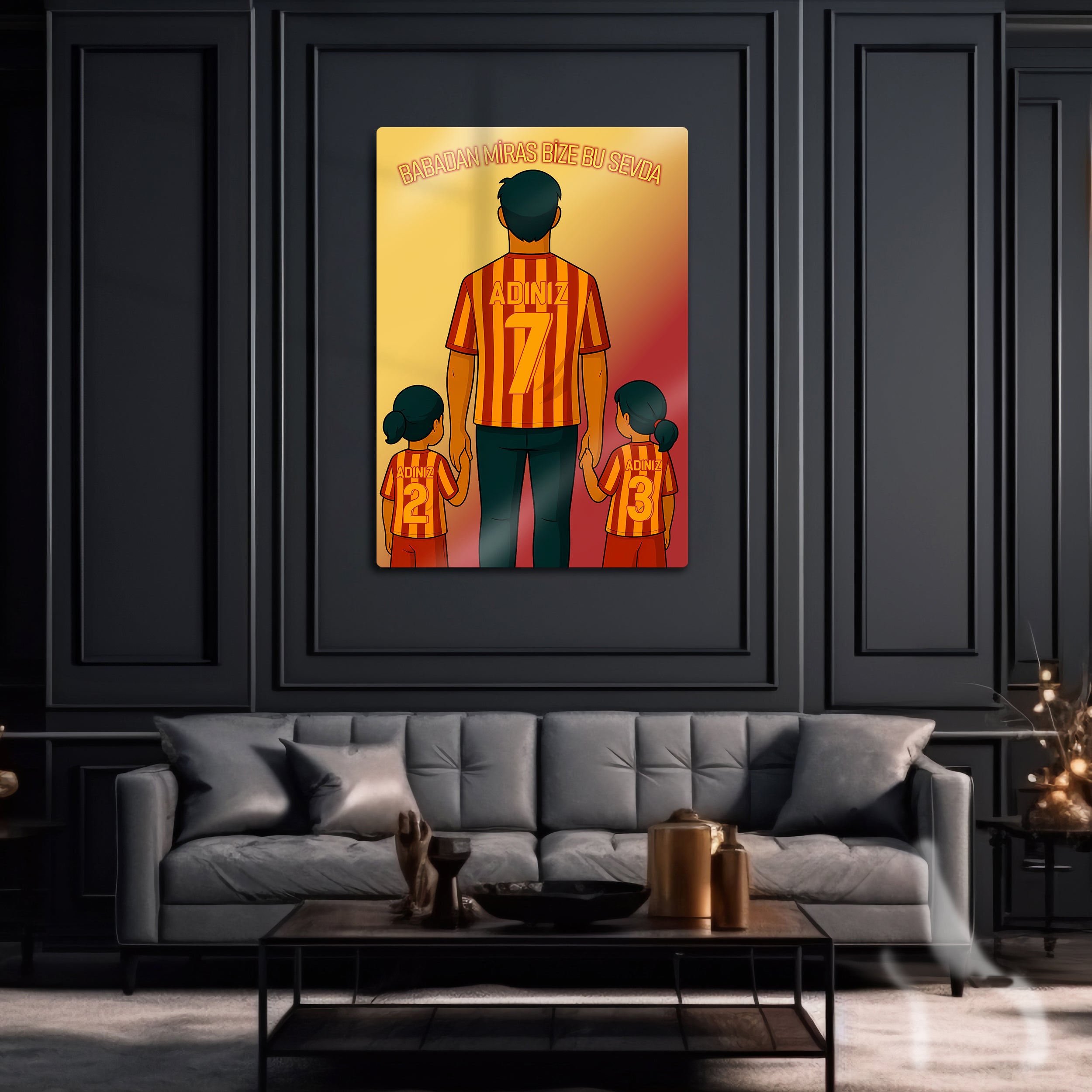 Galatasaray Baba 2 Kız Çocuk - Kişiselleştirilebilir Metal Tablo