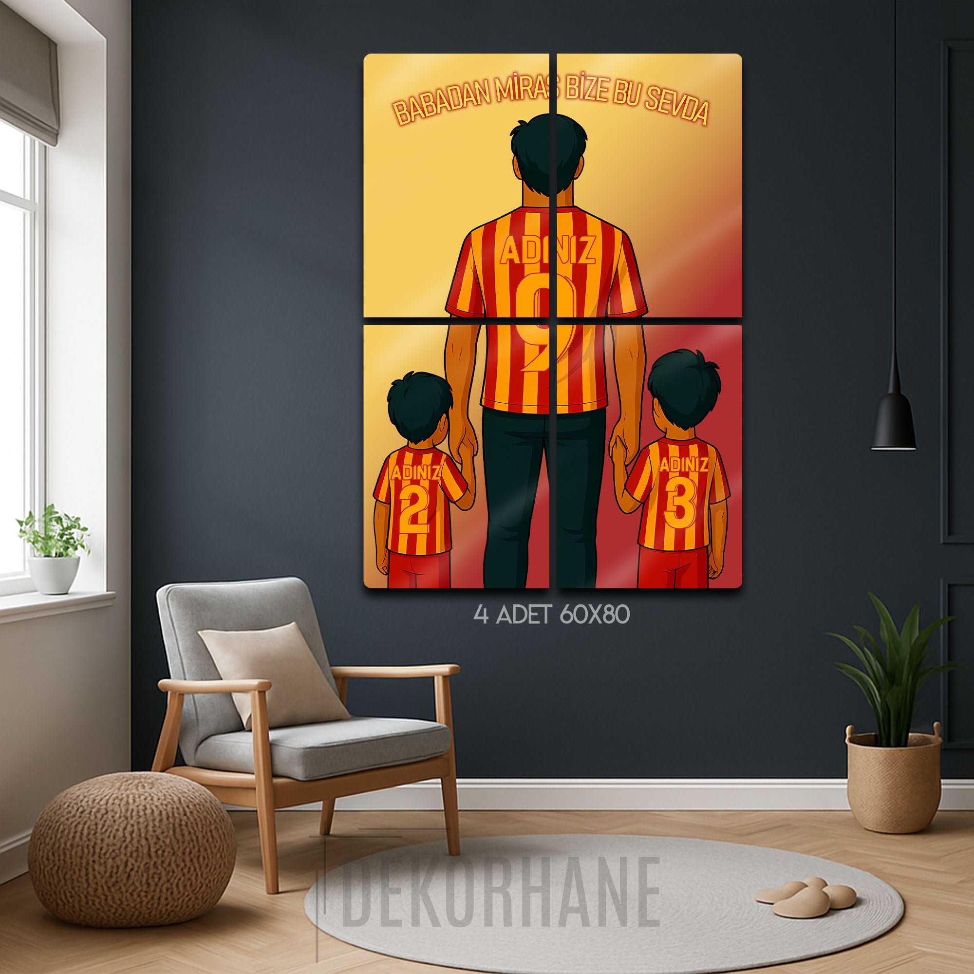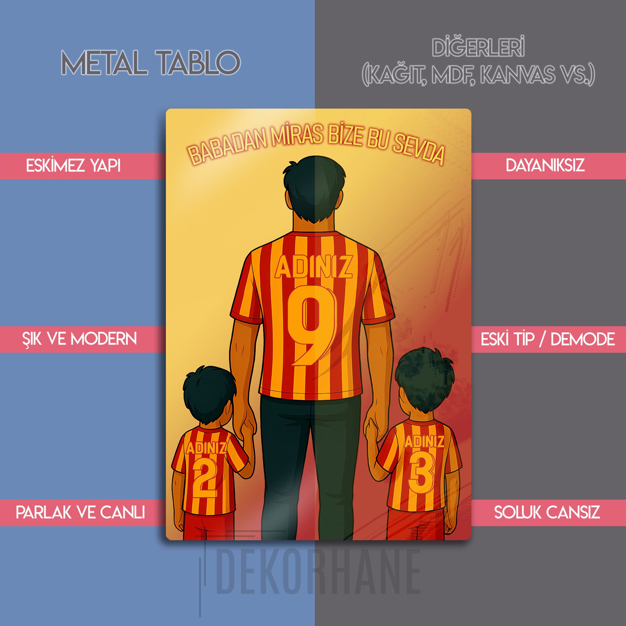 Hemen sipariş verin, Sarı-Kırmızı renklere olan aşkınızı ve ailenizin o sarsılmaz bağını Dekorhane.com kalitesiyle duvarlarınızda ölümsüzleştirin!