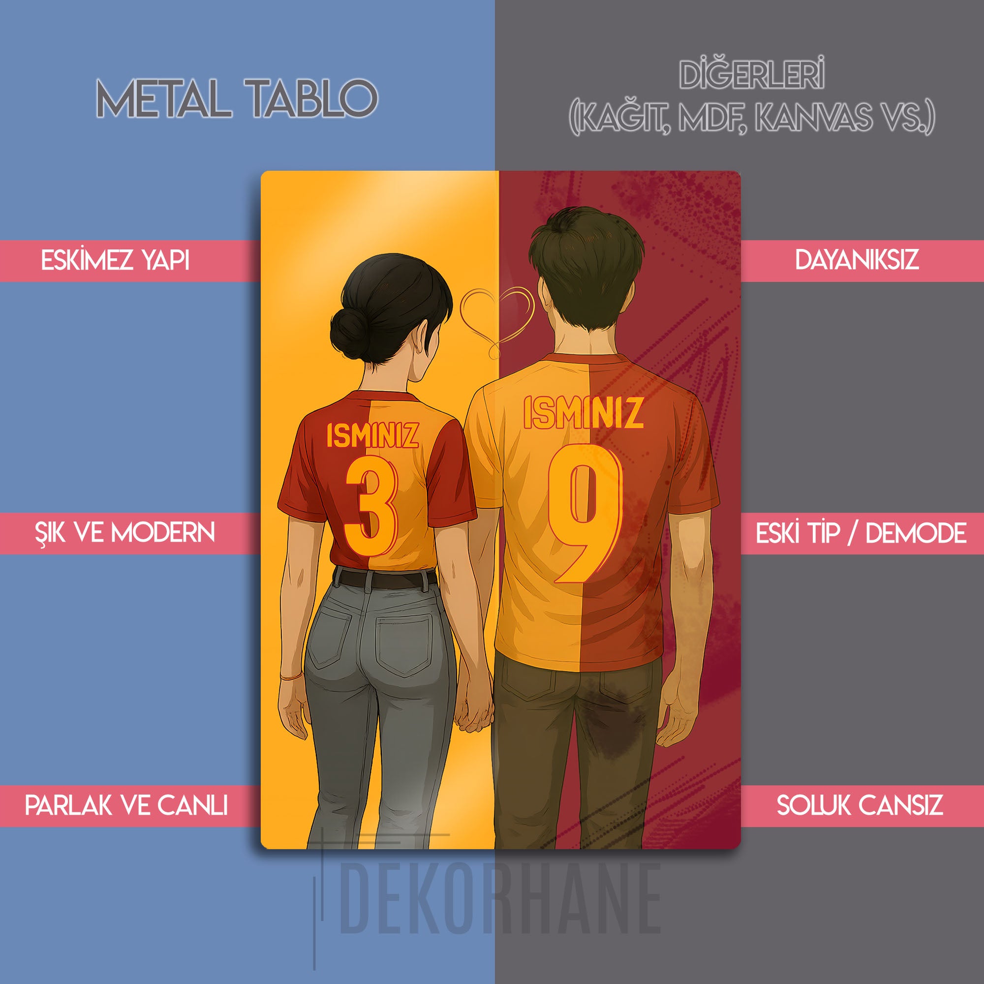 Aşkımız Sarı Kırmızı: Kişiye Özel Galatasaray Sevgili Metal Tablosu